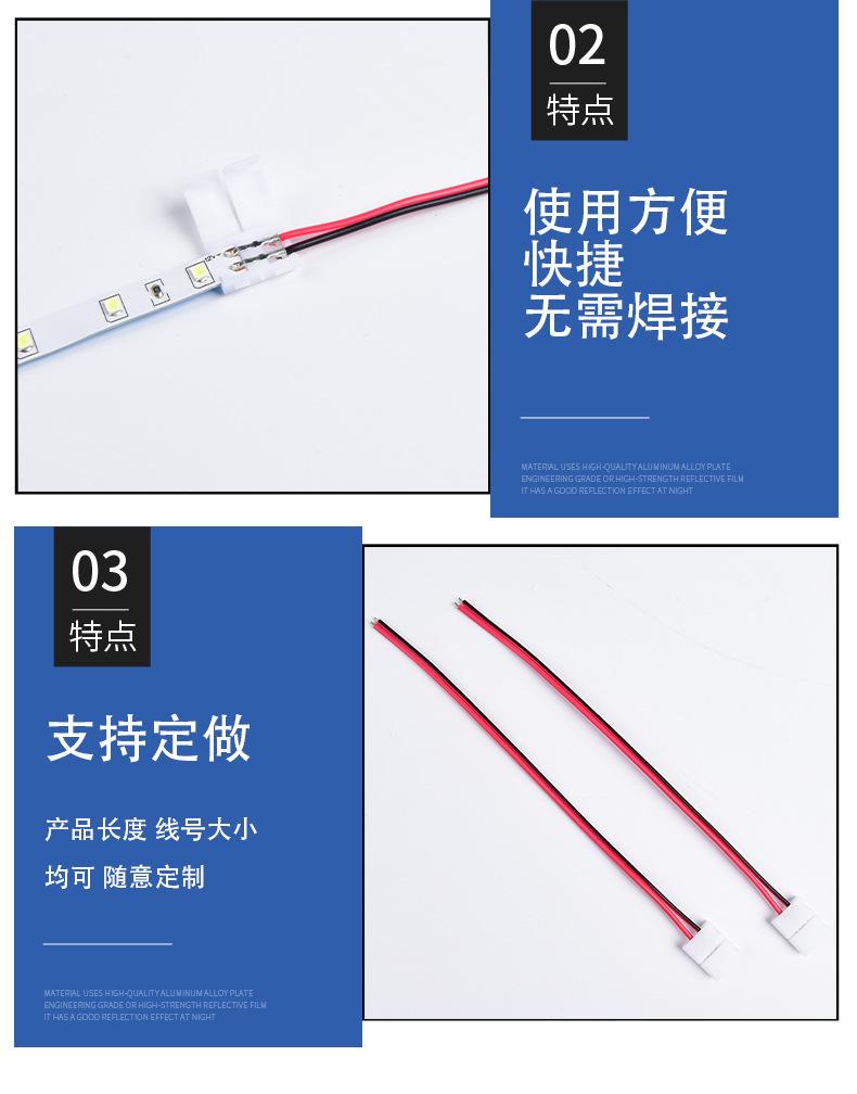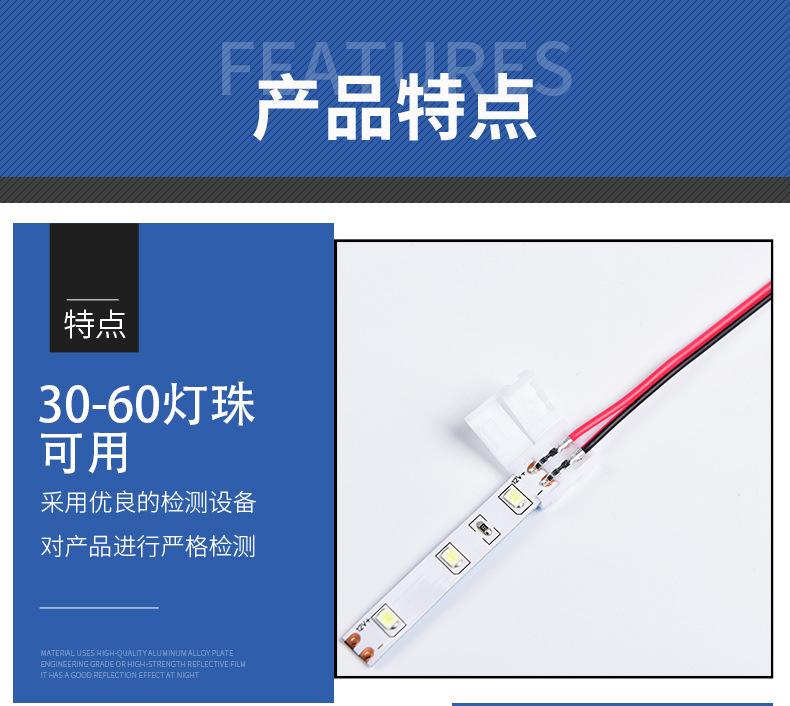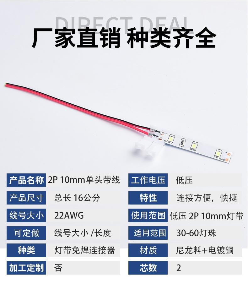 Conector de barra de luz monocromática 5050 soldadura sin soldadura terminal de acoplamiento rápido tira de luz monocromática 10mm cabeza simple con cable