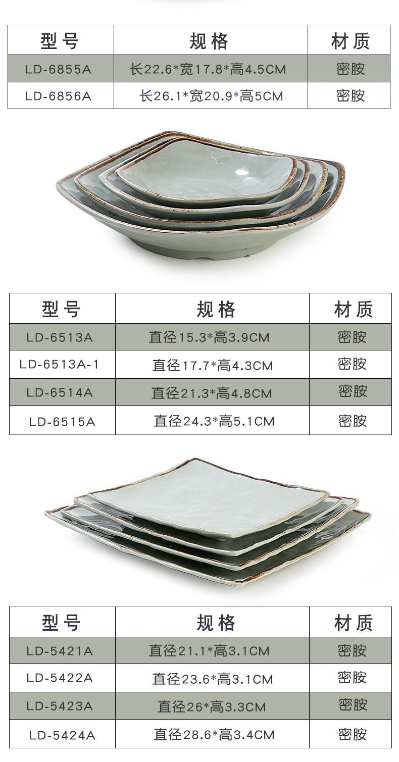 Plato de melamina plato creativo para olla caliente plato para barbacoa plato de plástico para bocadillos plato con forma plato cubierto para arroz plato cuadrado juego de vajilla