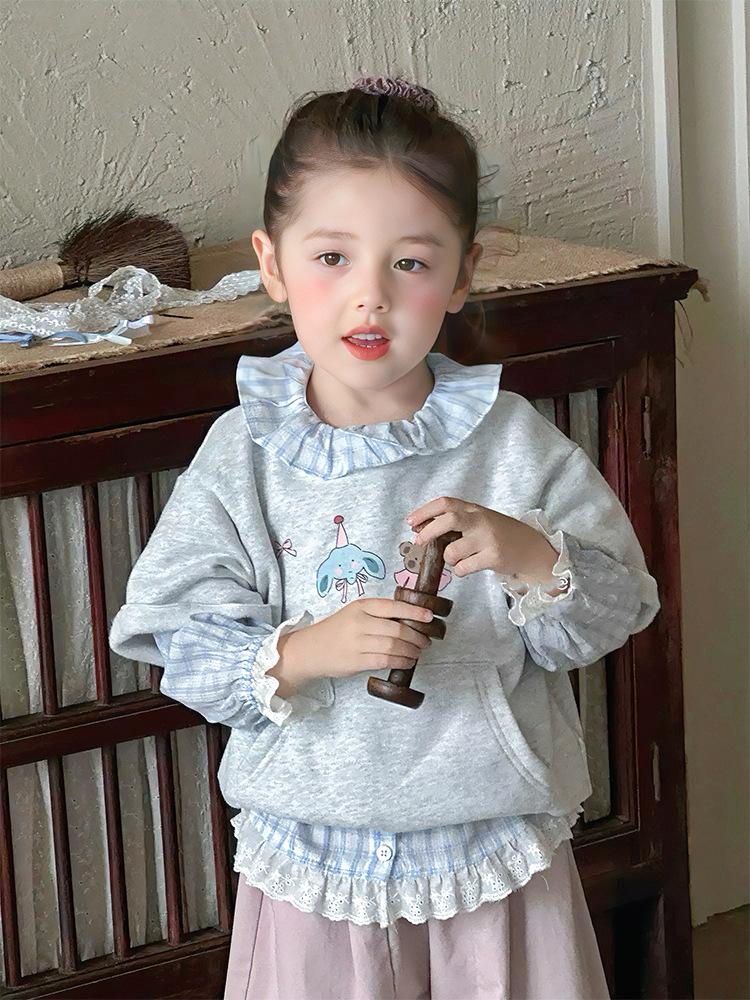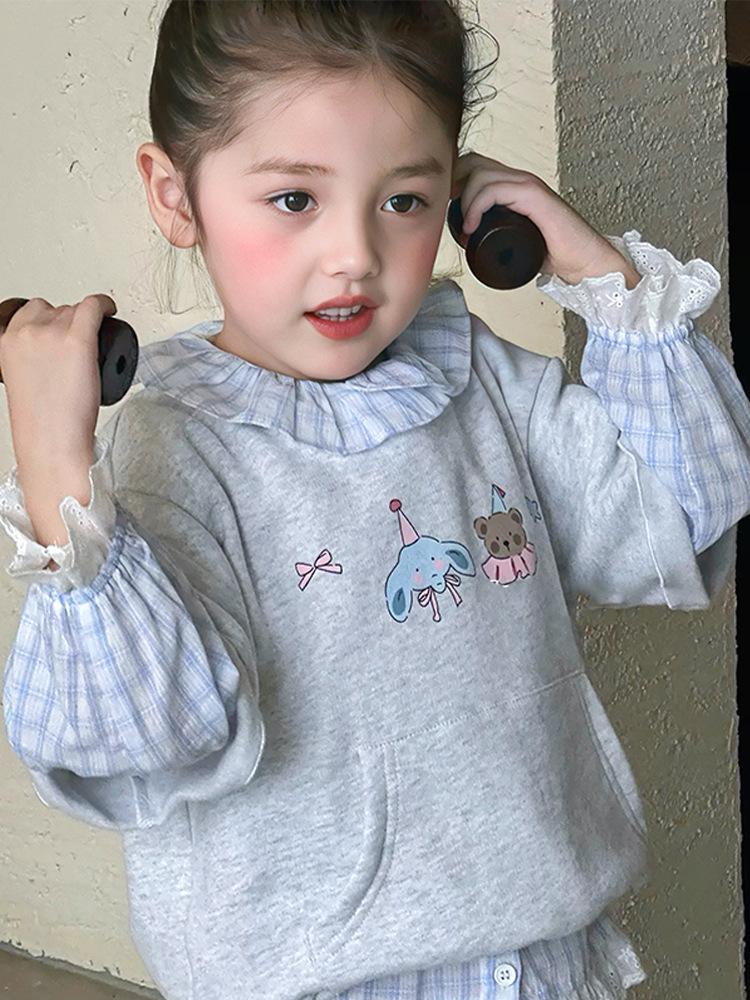 Sudadera de Otoño 2025 para Niñas Estilo Camisa a Cuadros Casual Dibujos Animados Conjunto-66188