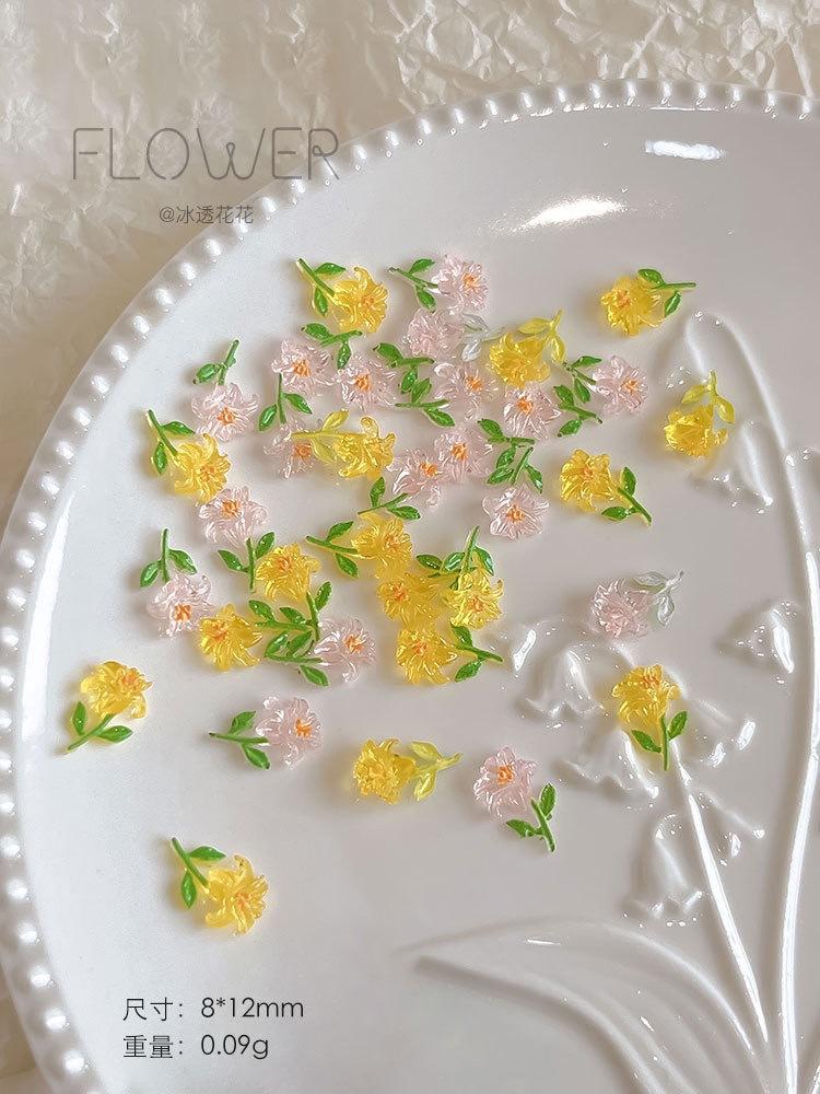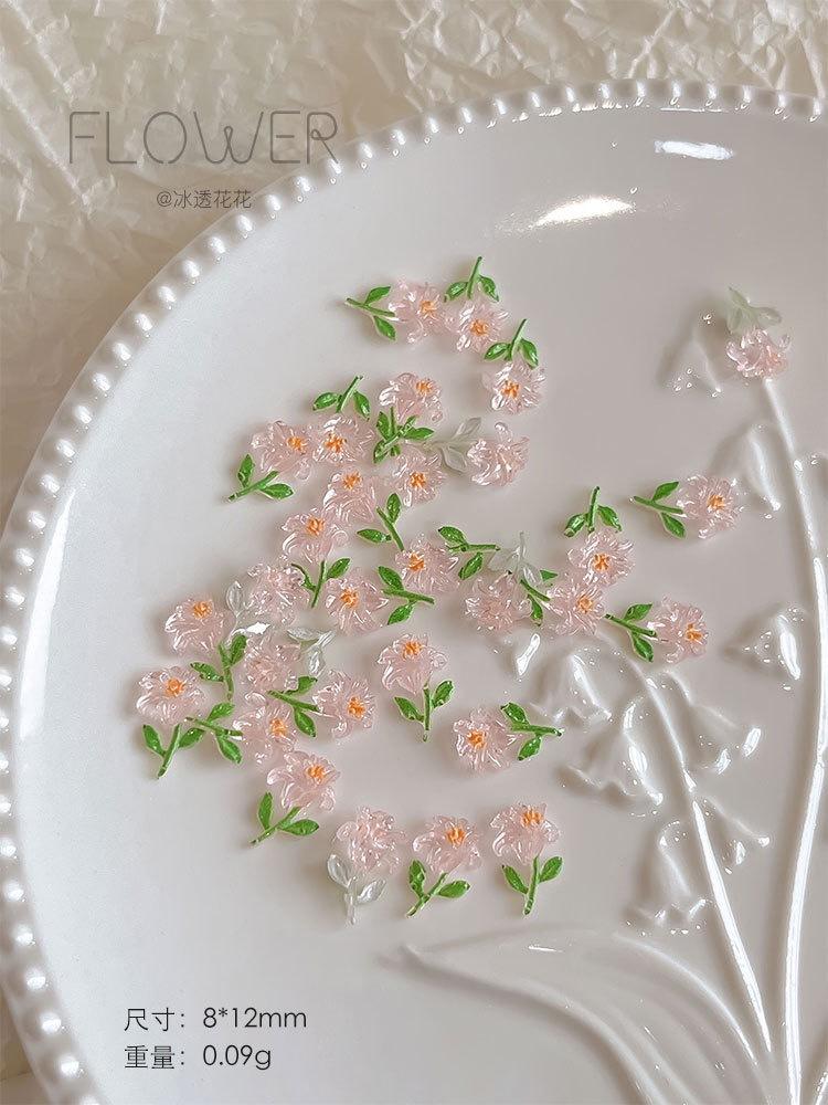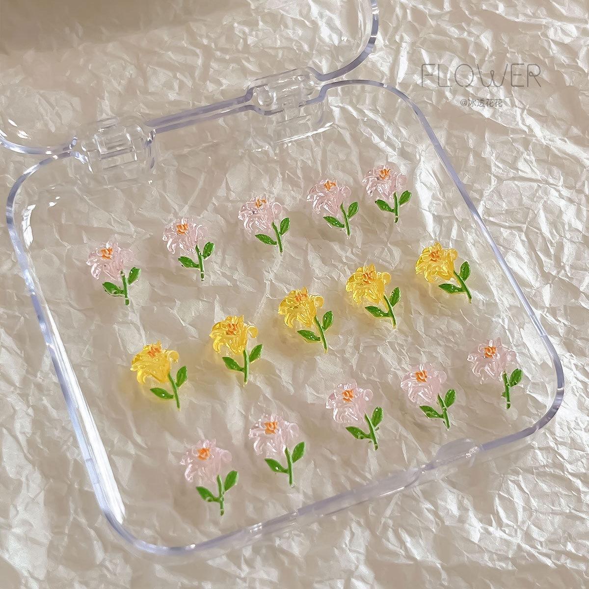 2025 Nuevo Estéreo Flor Mixta Resina Uña Diamante Dulce Decoración Hielo Transparente Lirio Arte de Uñas Joyería