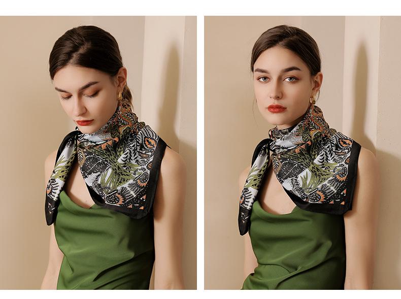 2025 Verano Nuevo Estampado Pañuelo Cuadrado Pañuelo de Seda Venta al por Mayor Retro Francés Seda Falsa Pañuelo para el Cuello Pañuelo Cuadrado Pequeño Años 90 Mujer