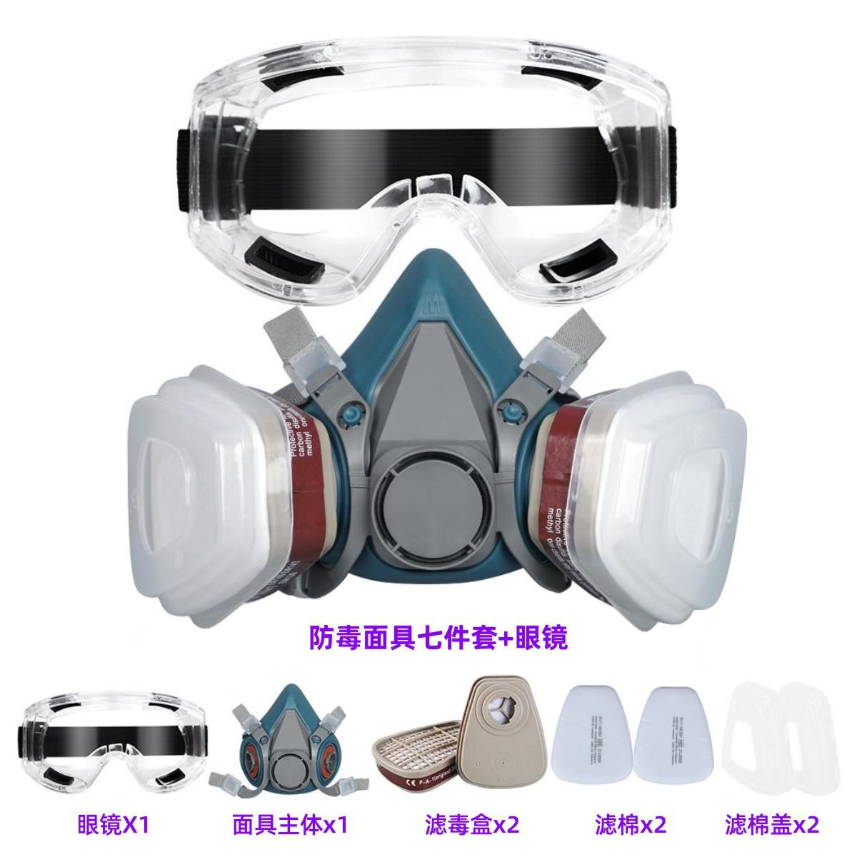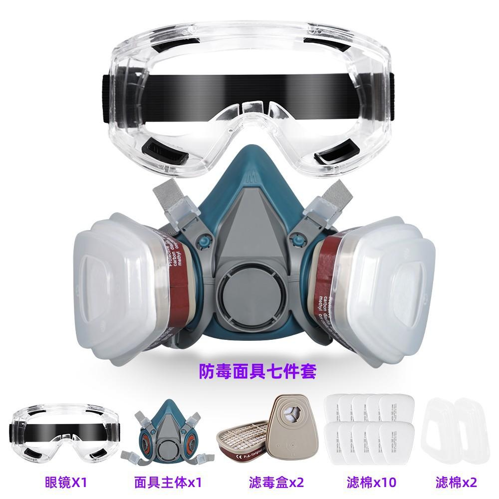 Seven-piece gas mask set, Gas mask seven-piece set + large eye mask, Gas mask + 10 pieces of cotton, Gas mask ...