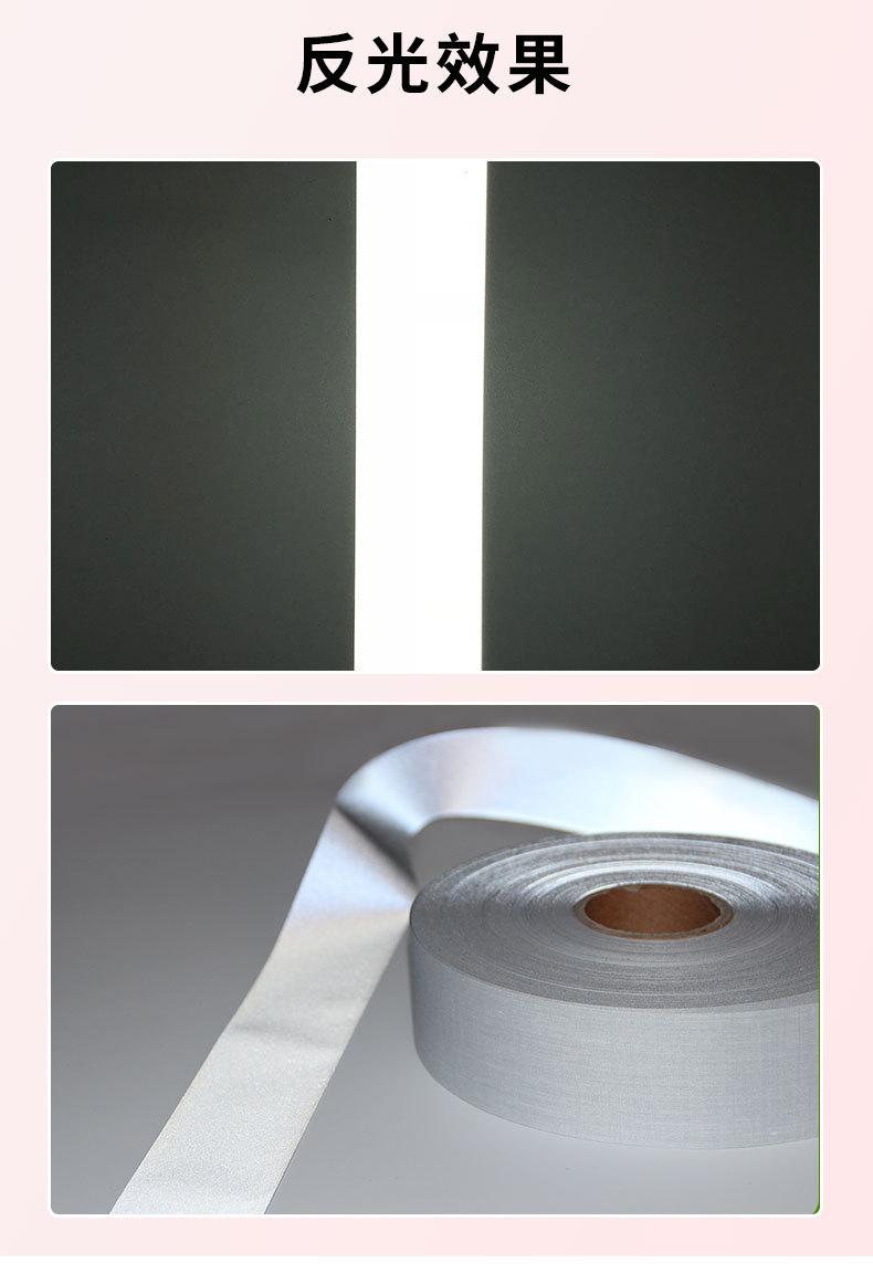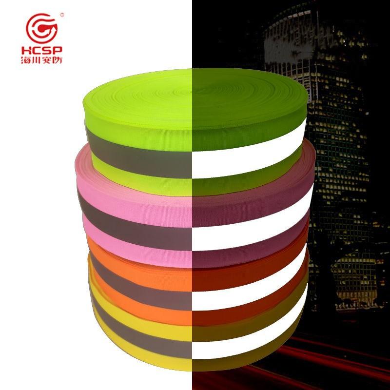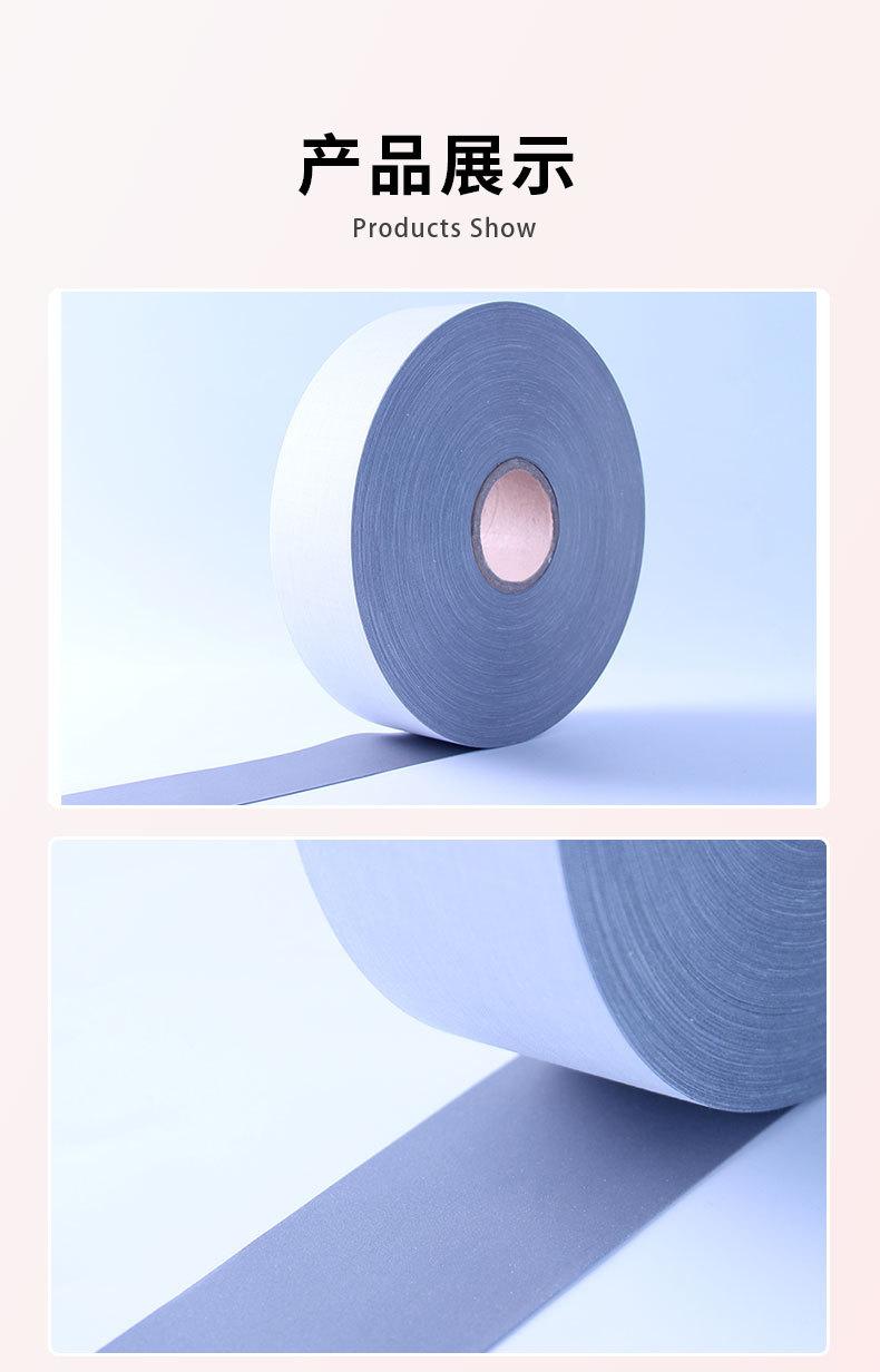 La cinta reflectante se fabrica mediante estampado en caliente de una o dos películas reflectantes estampadas en caliente (generalmente películas estampadas en caliente de alto brillo) sobre la cinta, y viene en una variedad de colores y especificaciones.