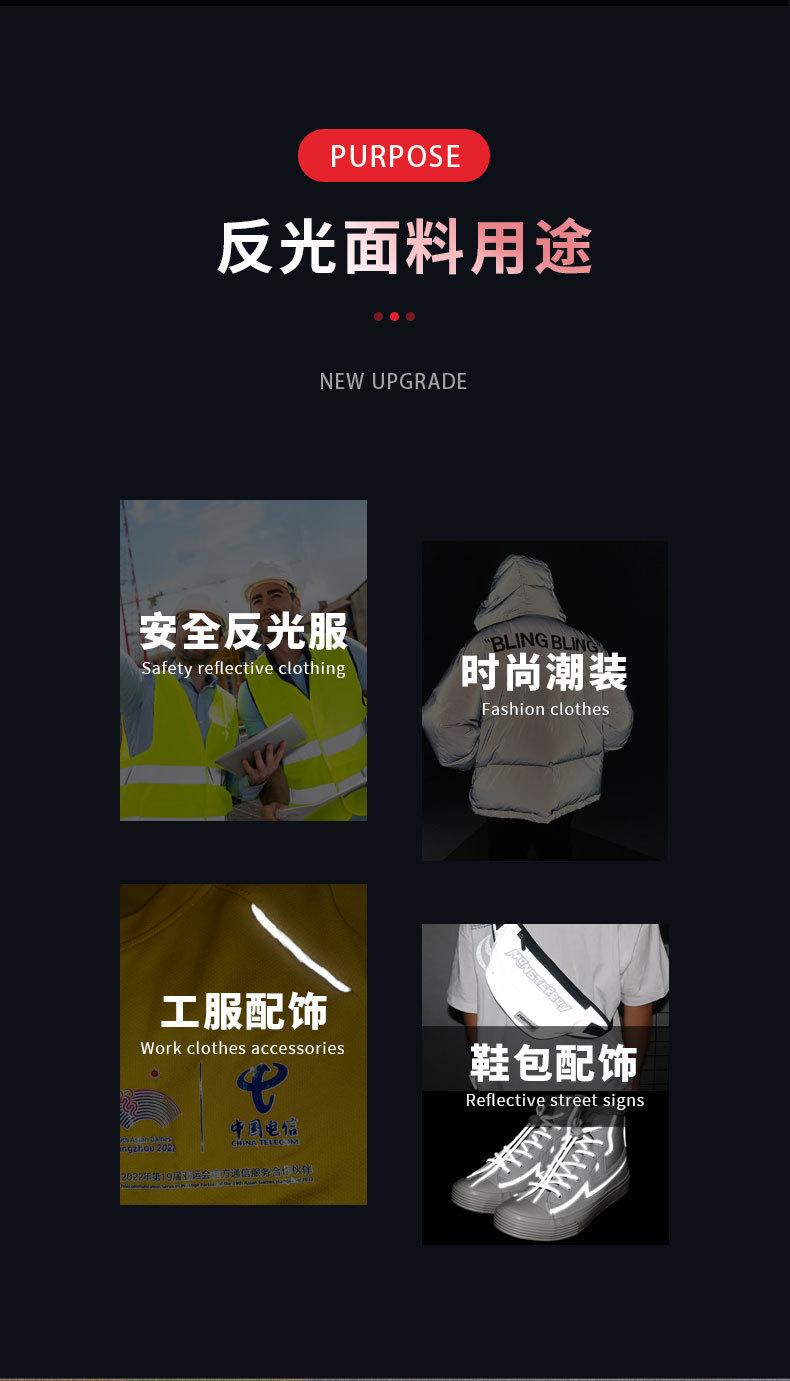 El color de la tela reflectante de color ordinario es relativamente brillante. El color de la tela reflectante de color de alto brillo se volverá más oscuro, y el cambio de color es causado por el plateado de aluminio de las cuentas de vidrio.