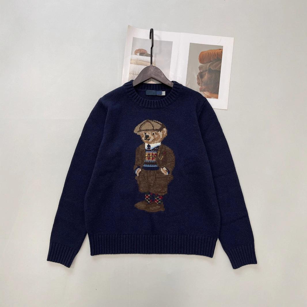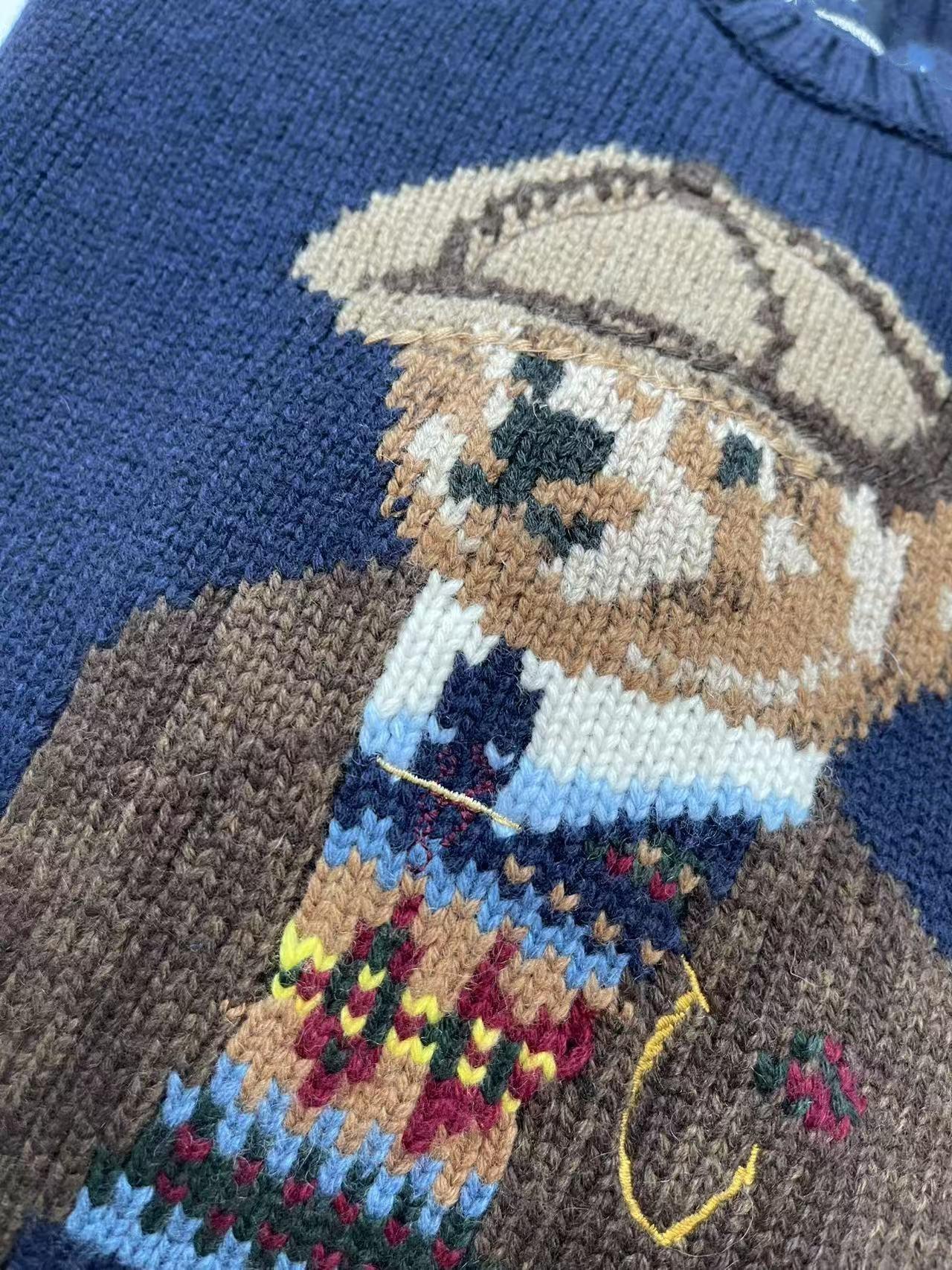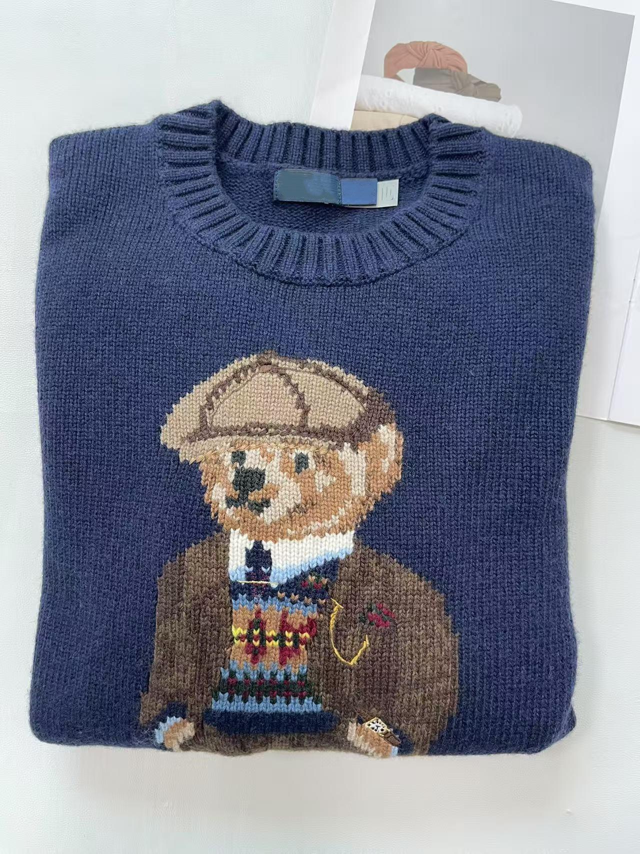 Boina Retro de Dibujos Animados Marca R Estilo Americano Bordado de Oso Tejido de Punto 10% Cachemira 90% Lana Suéter Top para Hombre