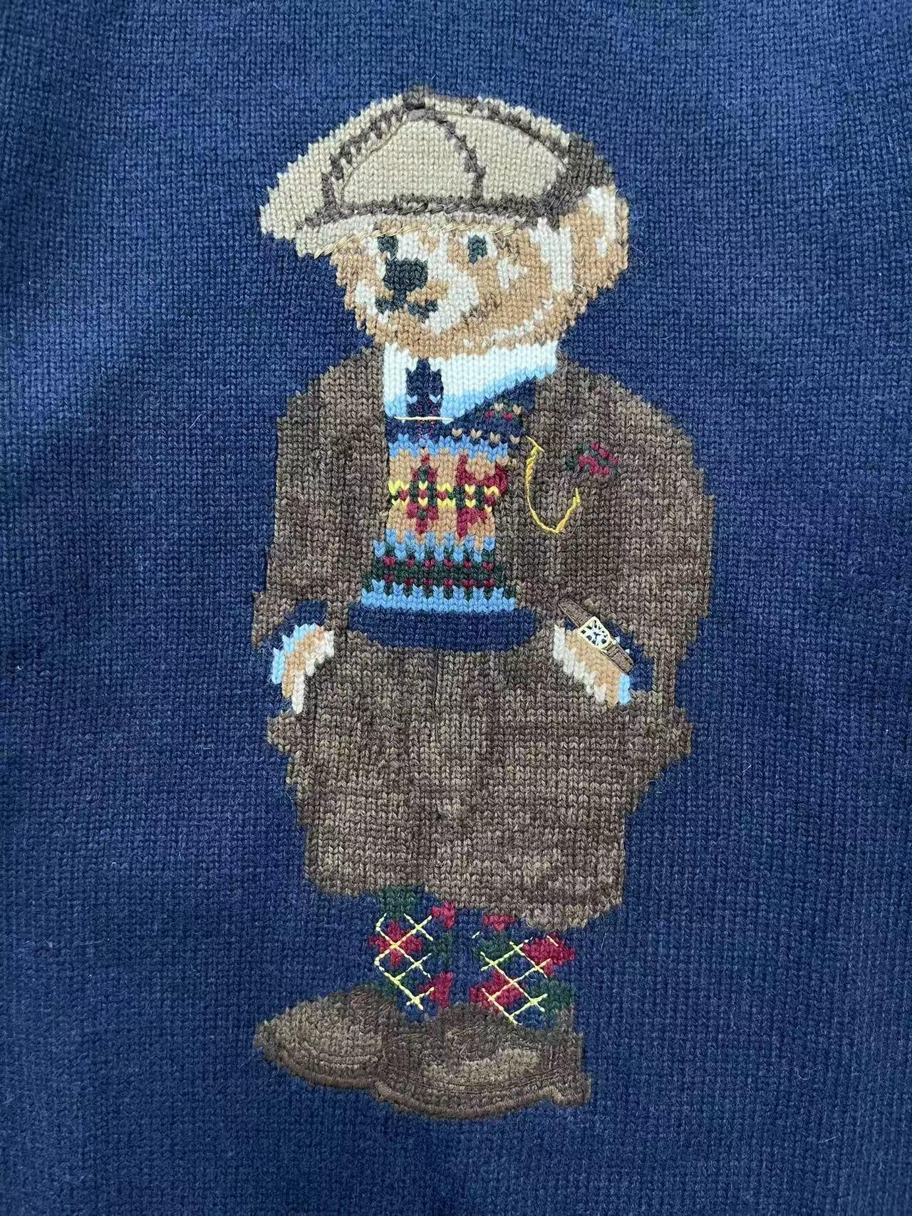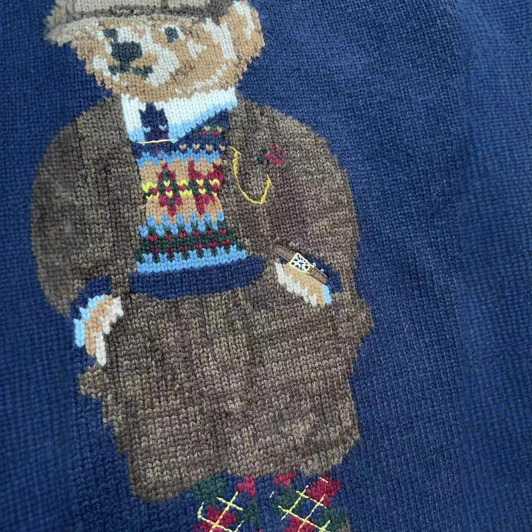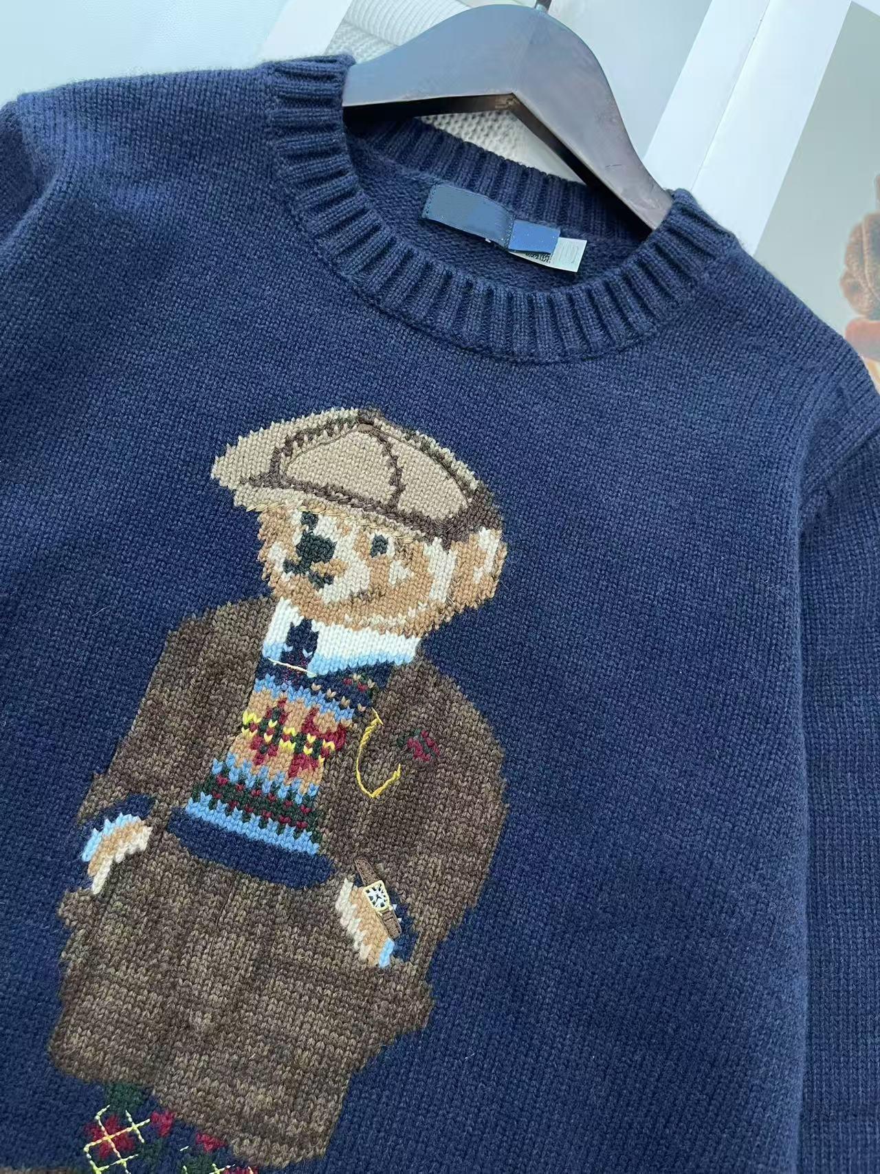 Boina Retro de Dibujos Animados Marca R Estilo Americano Bordado de Oso Tejido de Punto 10% Cachemira 90% Lana Suéter Top para Hombre
