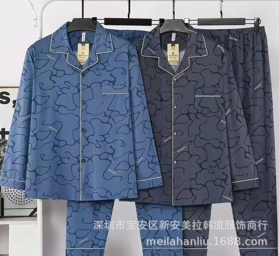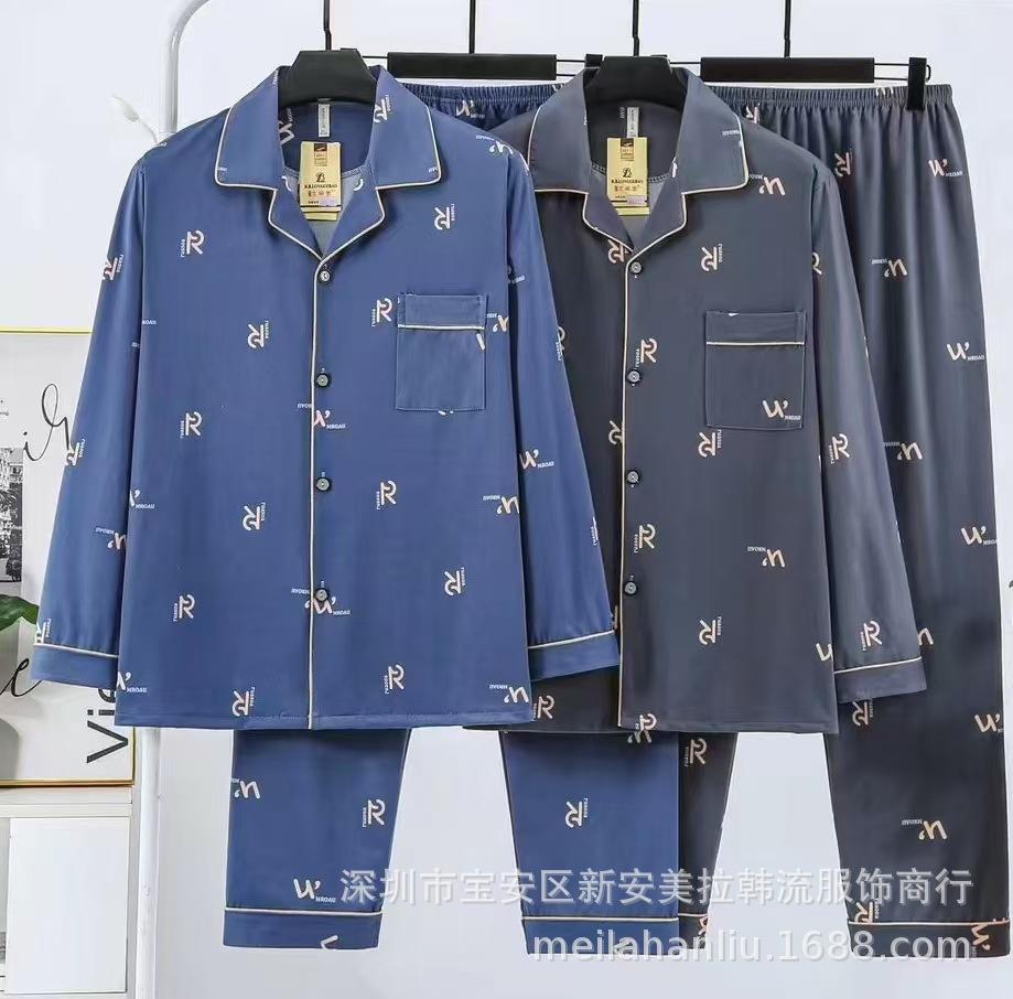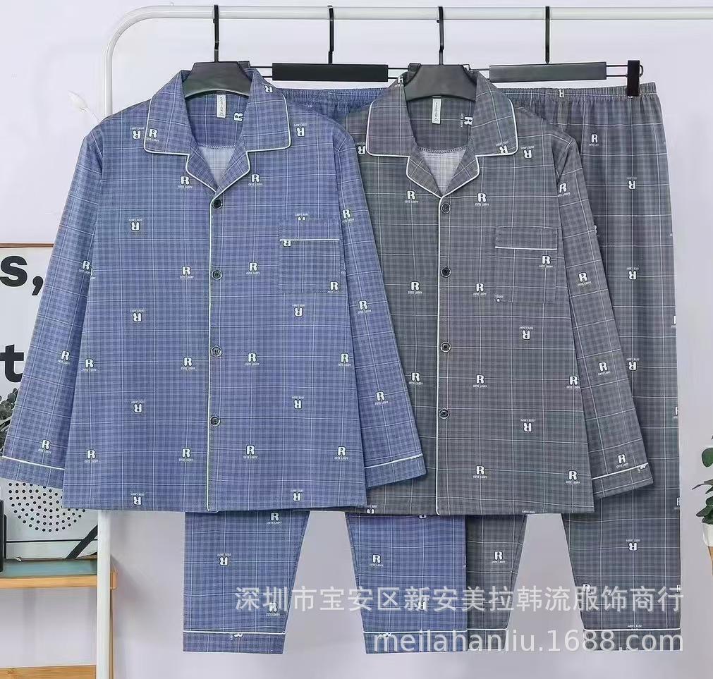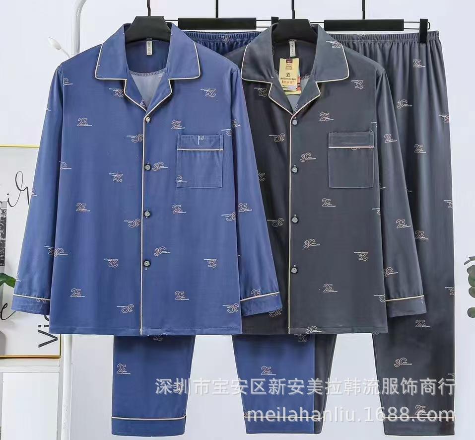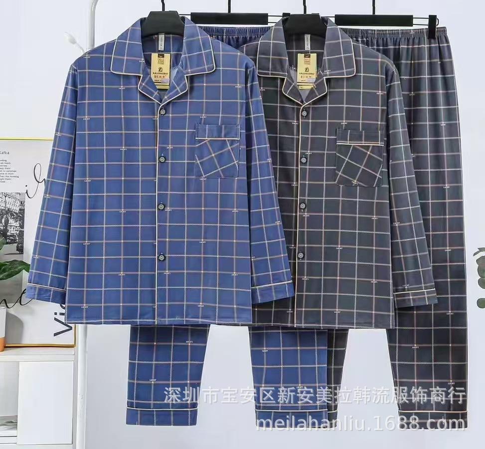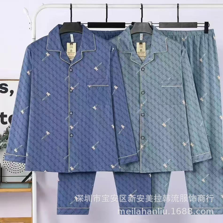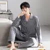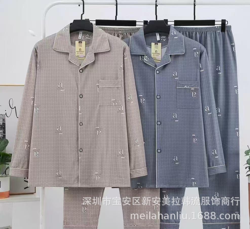 Pijama de otoño para hombre Longgebao Cárdigan de manga larga Solapa Algodón imitación Primavera y otoño Ropa casual para el hogar para personas mayores traje