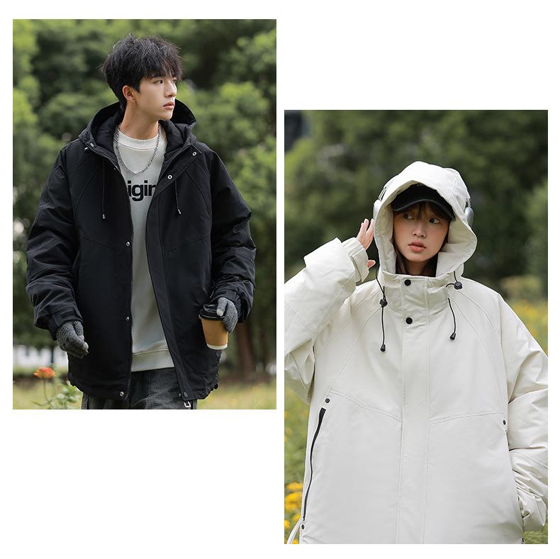 Compra Chamarra de Plumas 90 Chamarra de Plumas Otoño e Invierno Chamarra de Moda para Pareja para Hombre Color Sólido Simple Combinable Engrosada con Gorro Chamarra Cálida al por mayor en Joom.pro