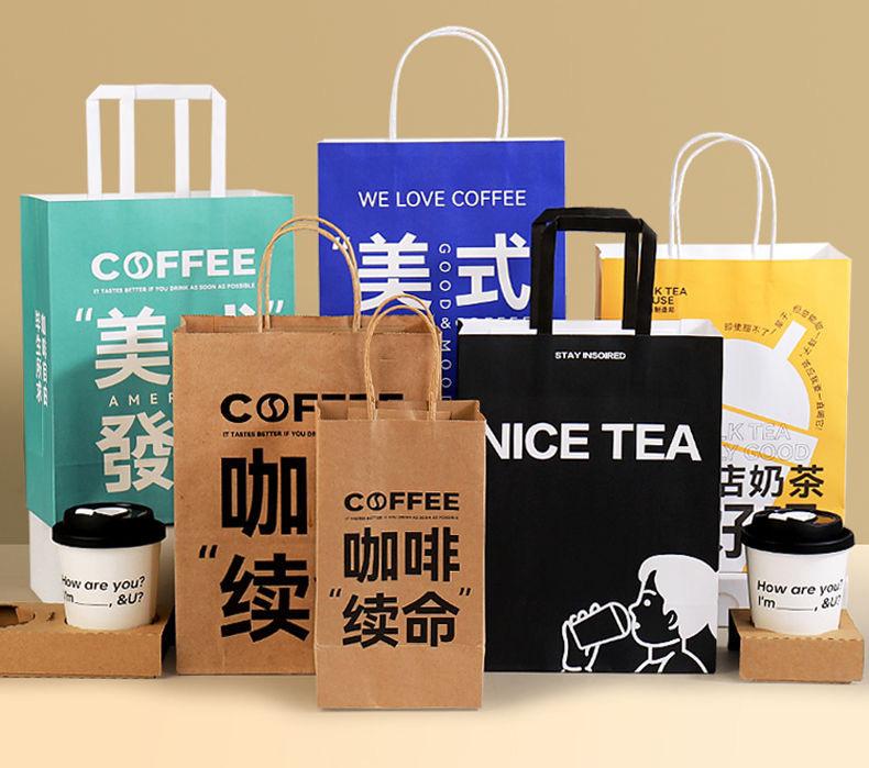 Bolsa de papel kraft bolsa de papel bolsa de papel personalizada bolsa de embalaje en stock venta al por mayor para llevar té de leche café regalo comida