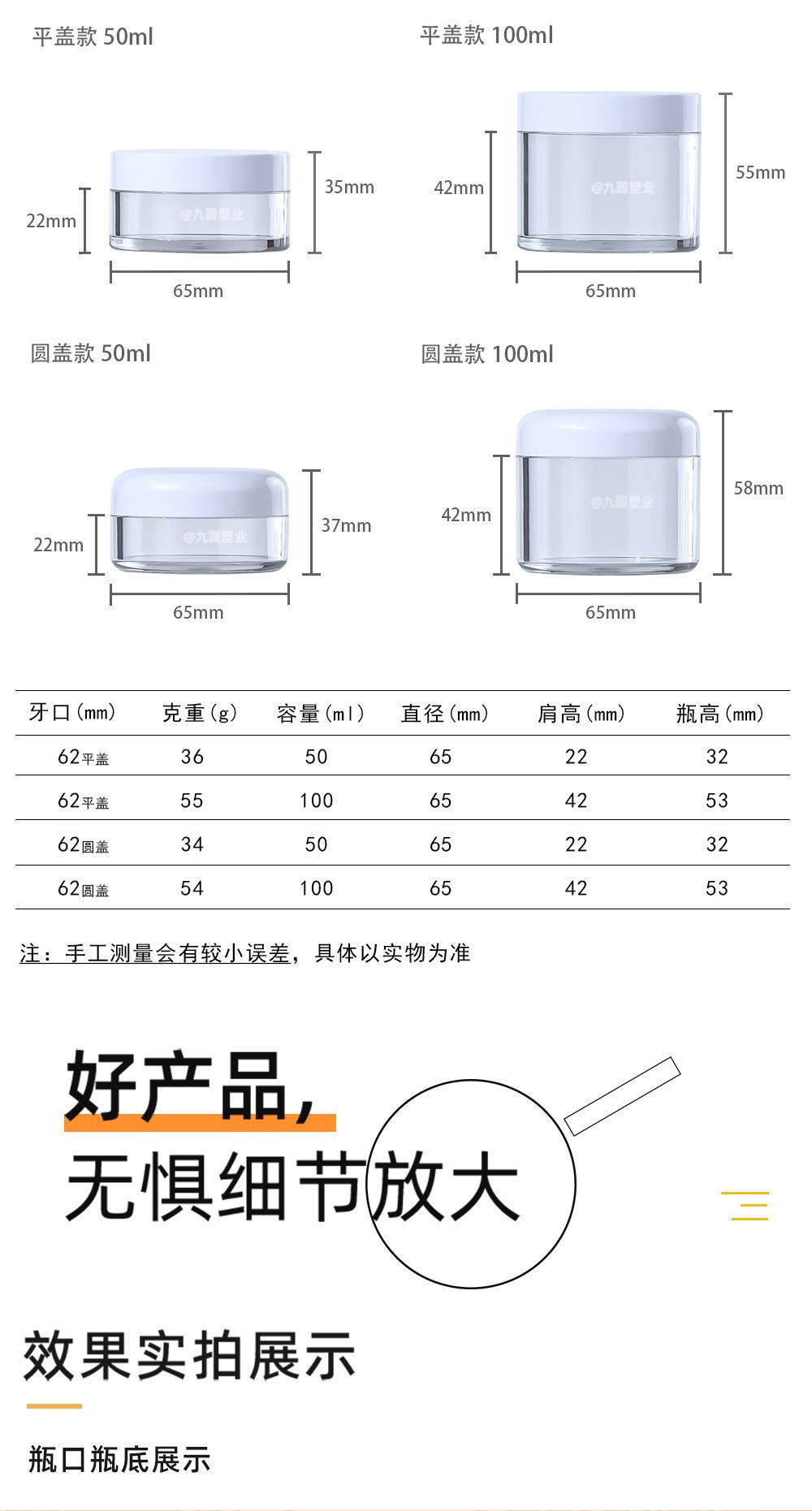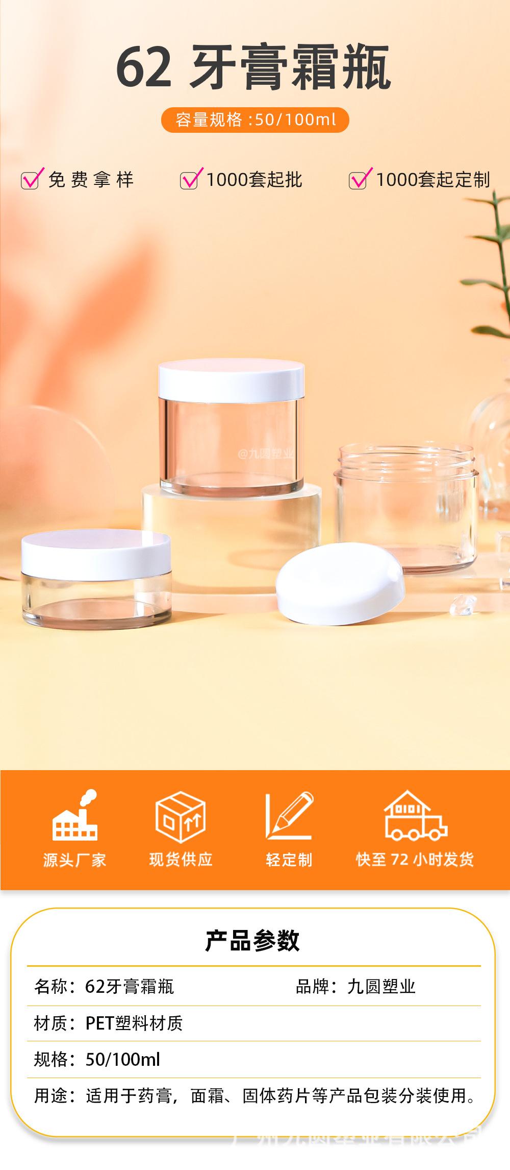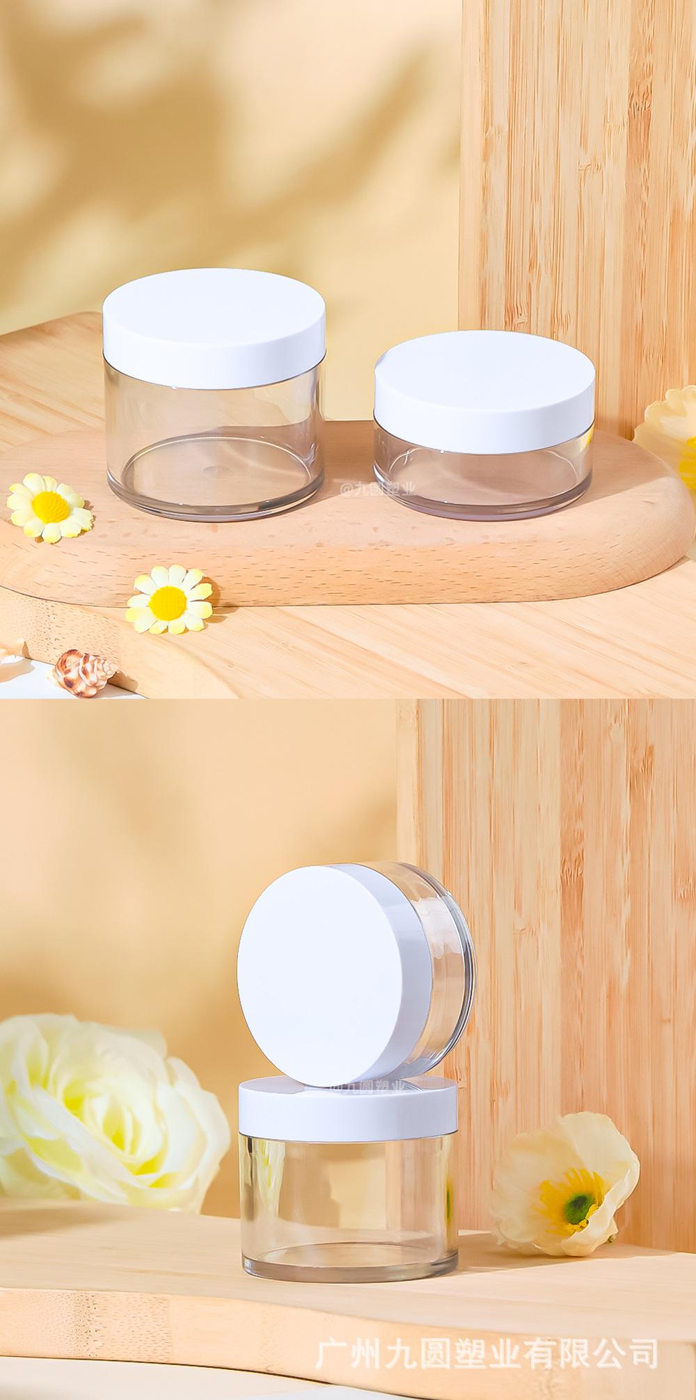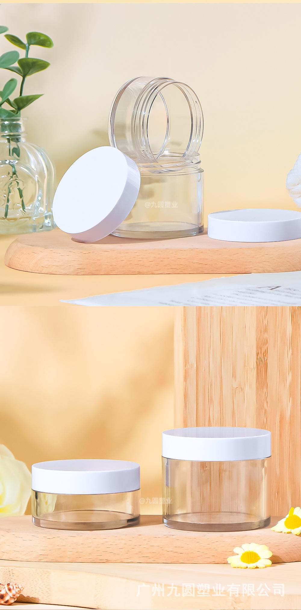 Venta al por mayor Mascota Plástico Tarro Vacío 50/100g Redondo Cosméticos Botella Boca Ancha Crema Facial Crema para Ojos Frasco de Crema