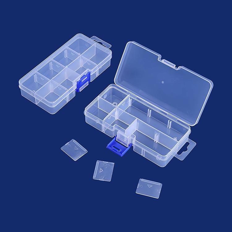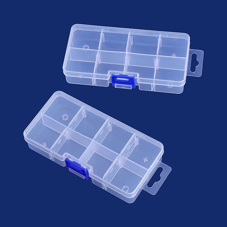 Caja de Piezas Transparente con Rejilla Removible de 8 Compartimentos Organizador de Joyería Caja de Almacenamiento de Plástico Caja de Embalaje para Herramientas de Joyería DIY