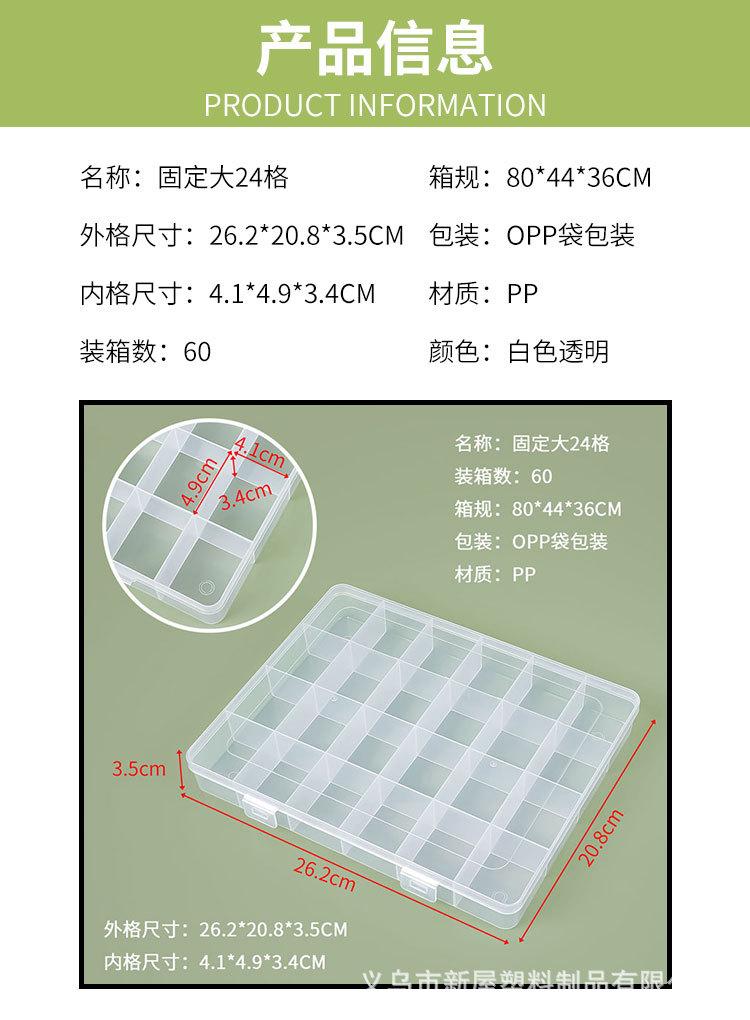 Caja de almacenamiento grande fija de 24 compartimentos, caja compartimentada, caja de compartimentos para piezas de ferretería con tapa, caja de almacenamiento de plástico, caja de compartimentos para joyería