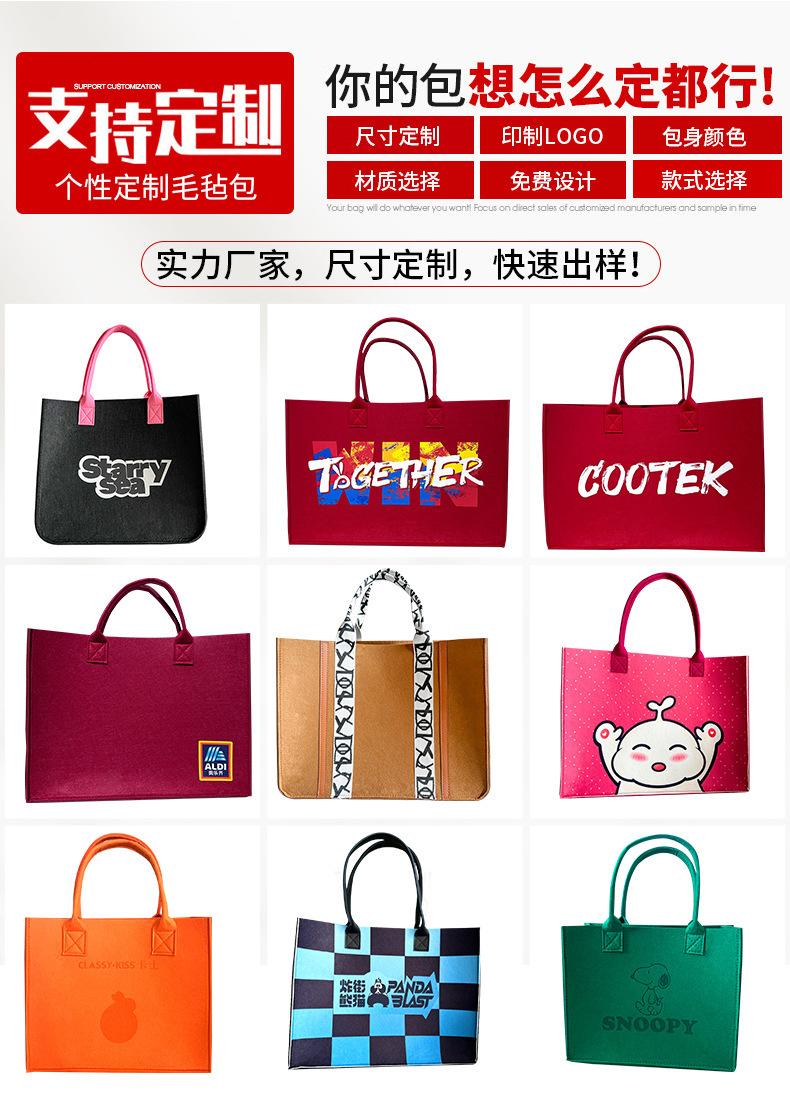 Bolsa de Fieltro Bolso de Mano Logotipo Personalizado Gran Capacidad Moda Casual Simple Hombro Compras Bolsa de Regalo de Fieltro