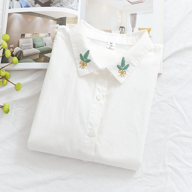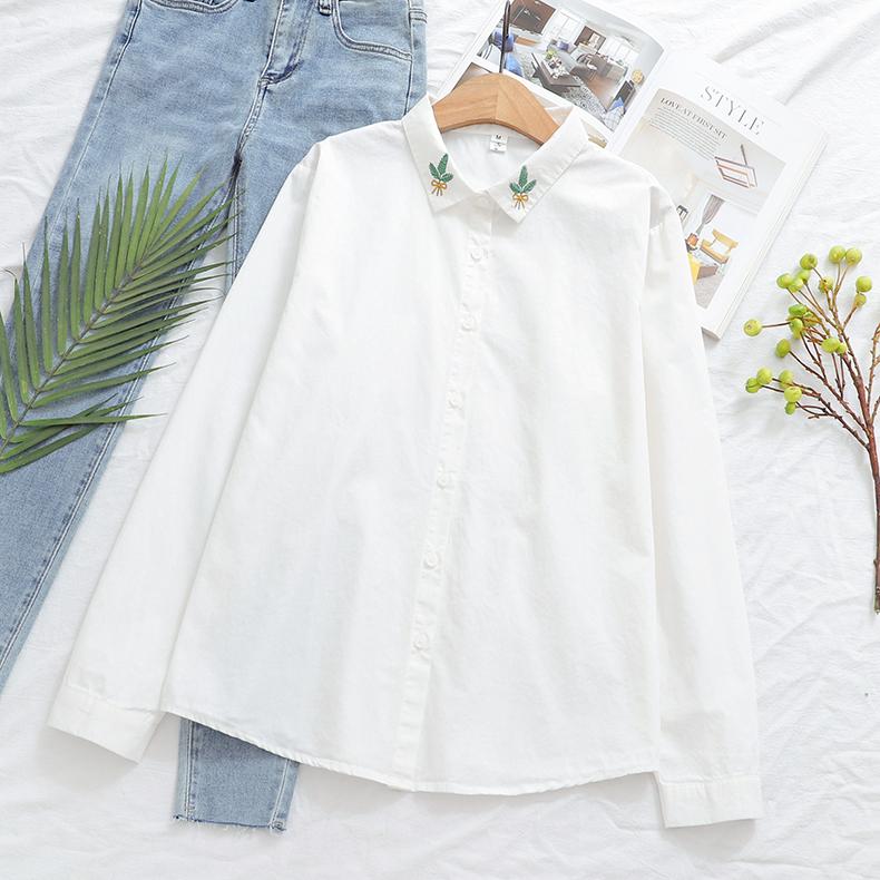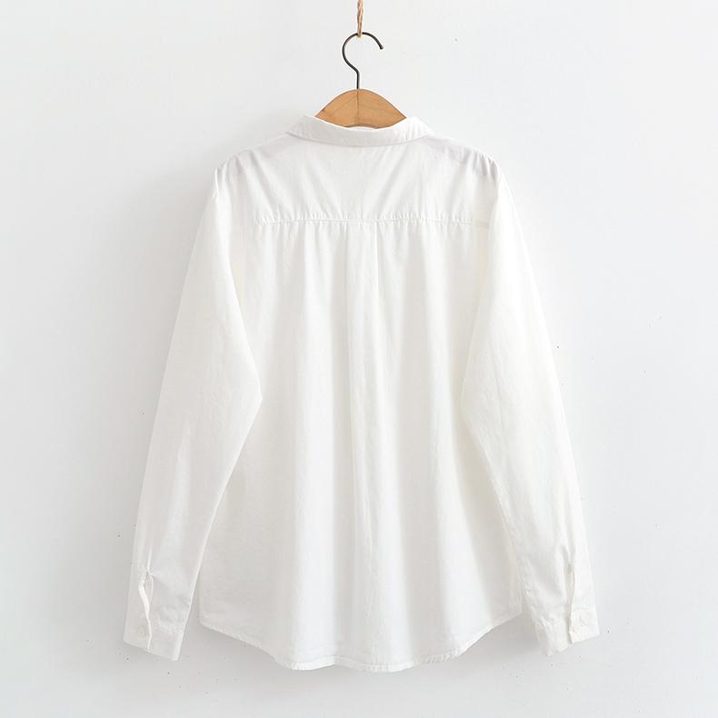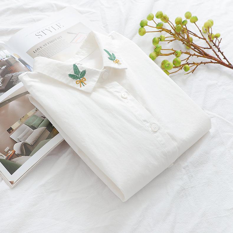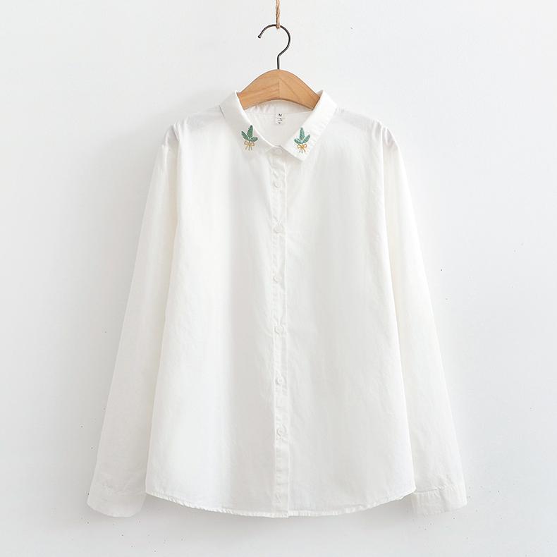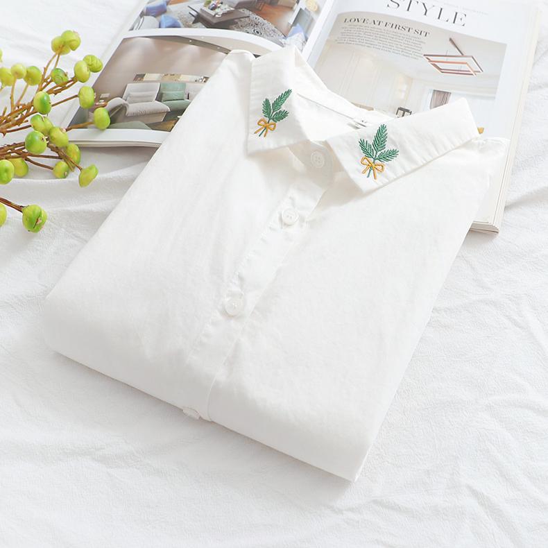 Compra Camisa blanca fresca de algodón de manga larga para mujer con cuello bordado de estilo artístico japonés, prenda base, top, ropa de otoño al por mayor en Joom.pro