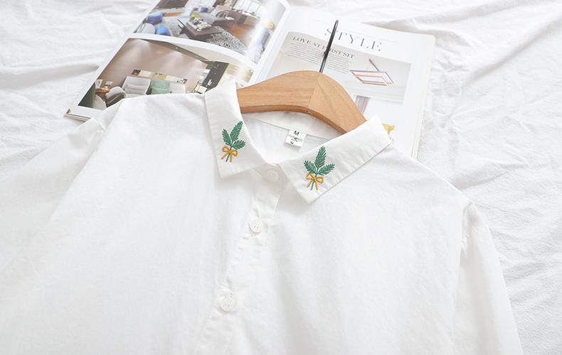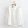 Camisa blanca fresca de algodón de manga larga para mujer con cuello bordado de estilo artístico japonés, prenda base, top, ropa de otoño