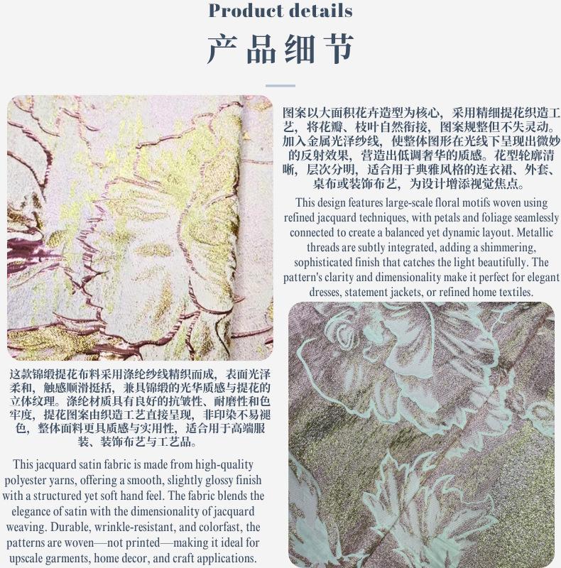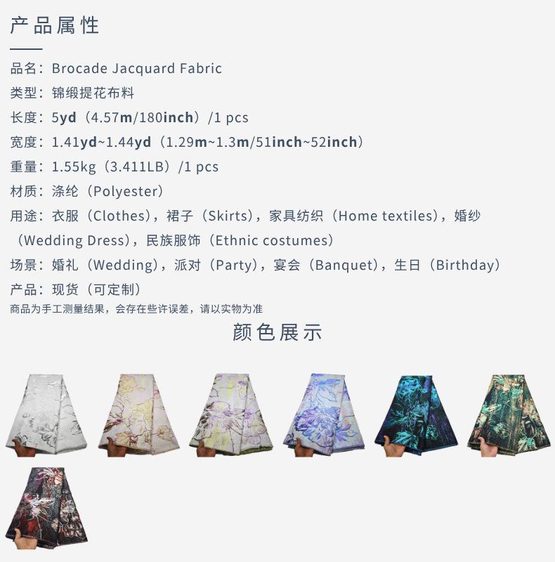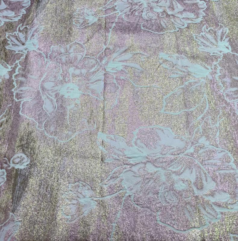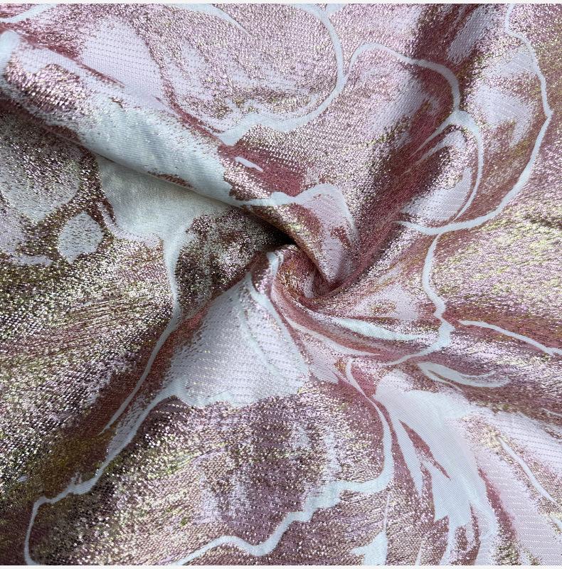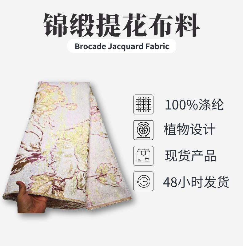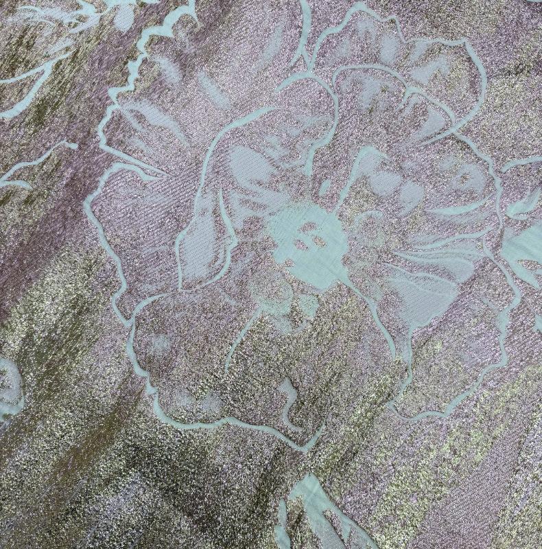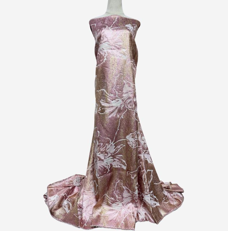 Tela jacquard calada de organza tejida con hilo dorado y plateado, tela de encaje, tela para vestido de noche, brocado
