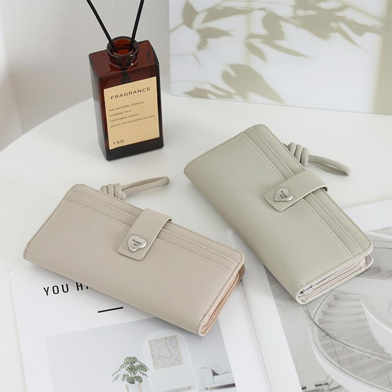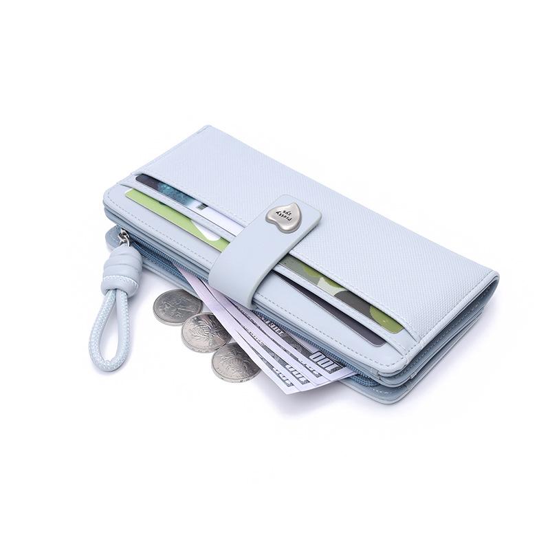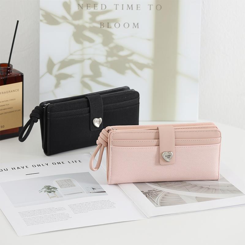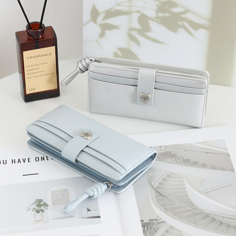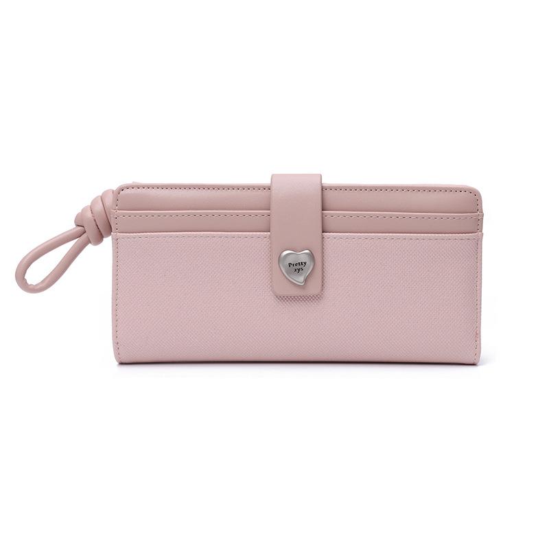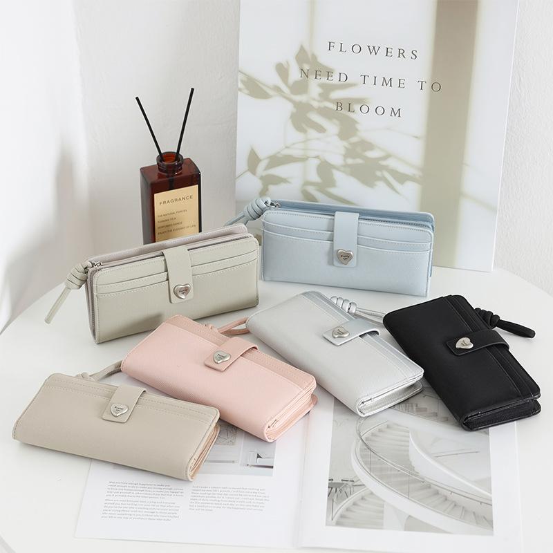 Nueva Cartera Larga para Mujer con Corazón de Amor Moda Transfronteriza Ranuras para Múltiples Tarjetas Monedero con Cremallera Ins Color Block Tarjetero Clutch