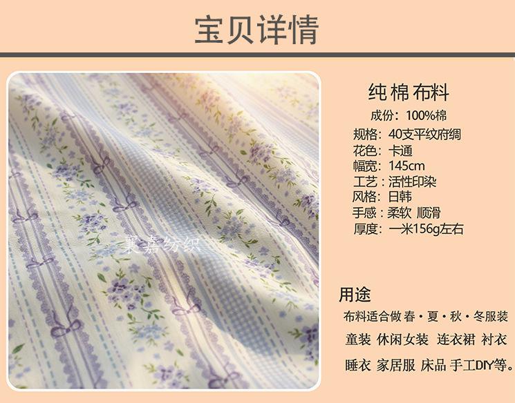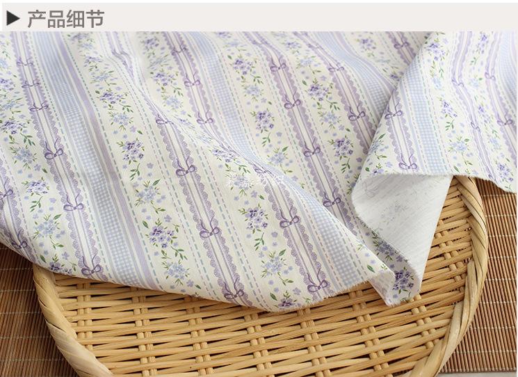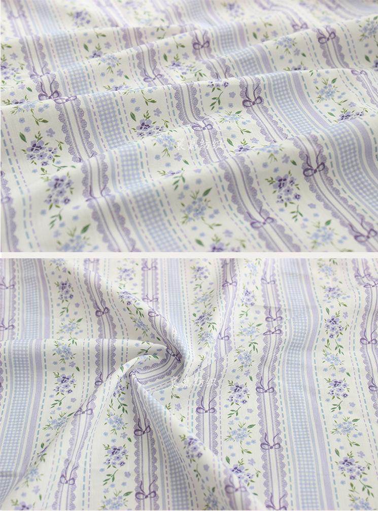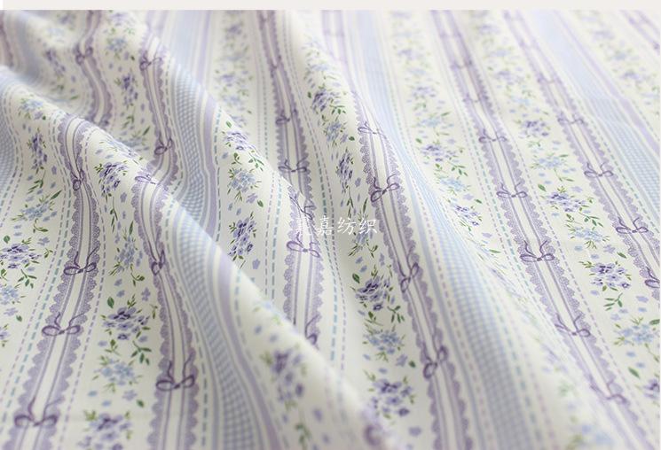 Algodón Puro 40 Hilos Rayas Frescas Morado Liso Amigable con la Piel Transpirable Pijama Falda Hecho a Mano Tela para Bebé