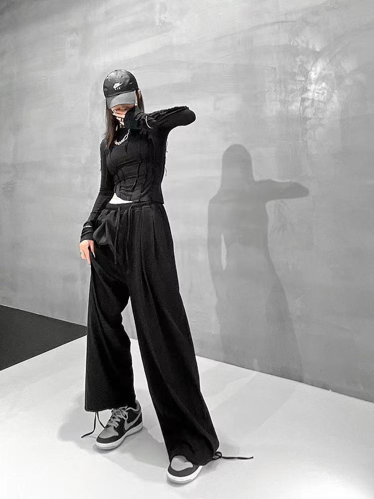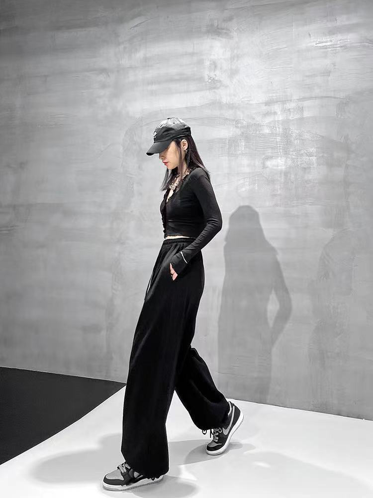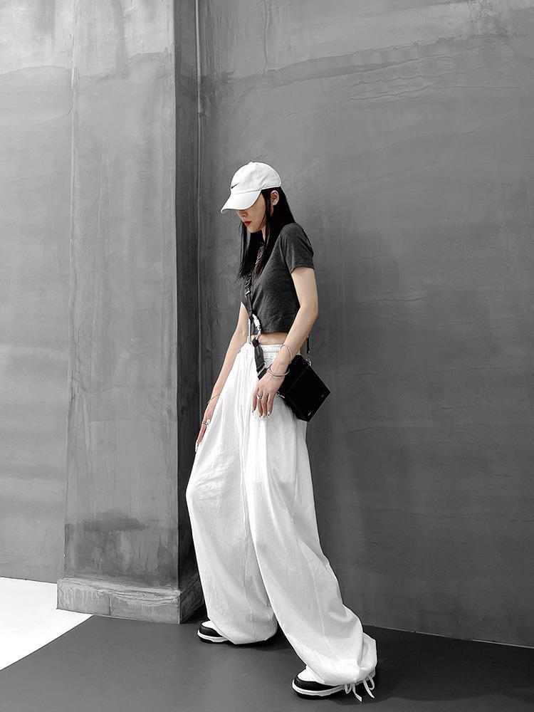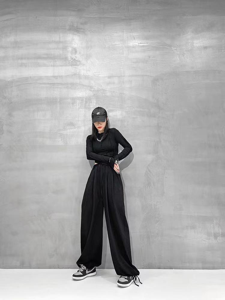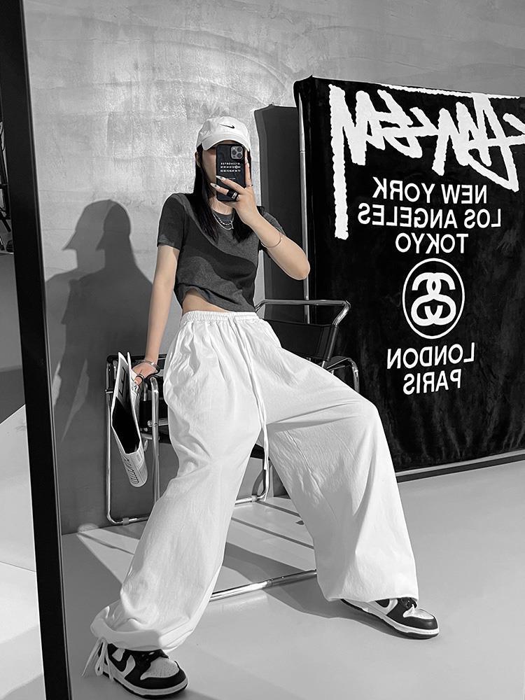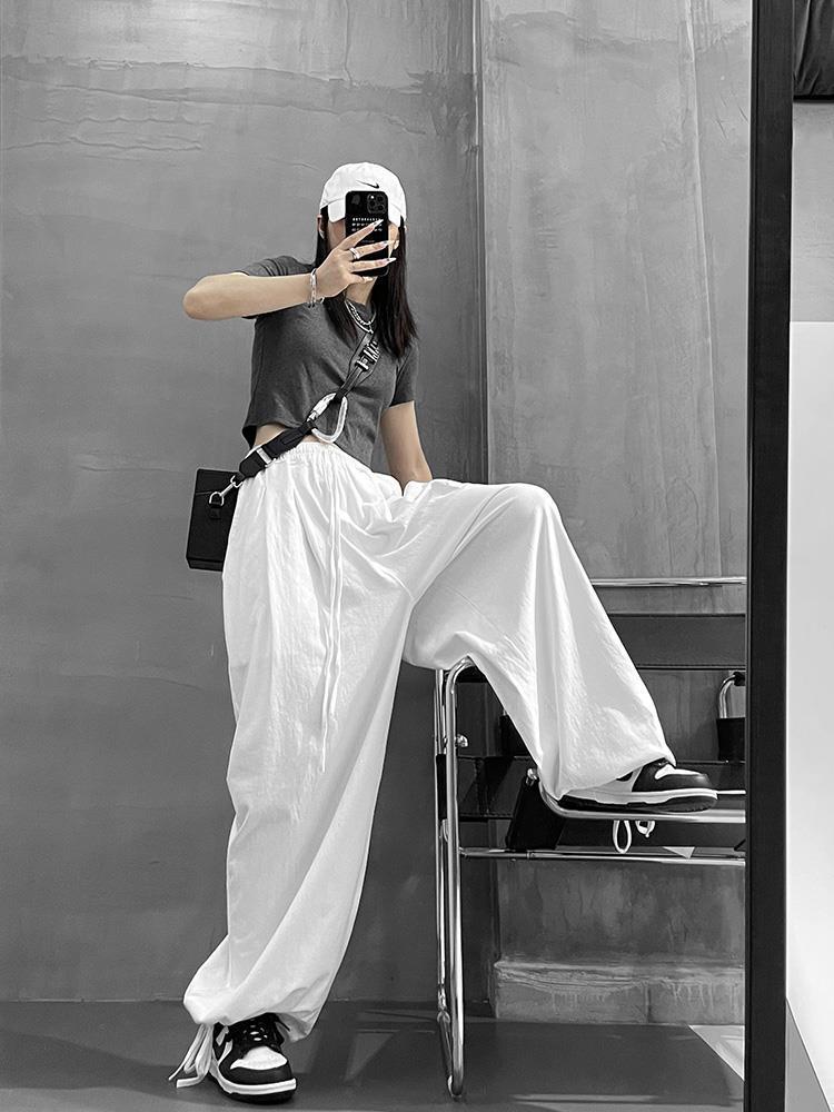 Talla grande Pantalones nuevos de primavera y verano para mujer de cintura alta sueltos adelgazantes de pierna recta para estudiantes de sexo femenino, pantalones casuales de moda anchos que combinan con todo