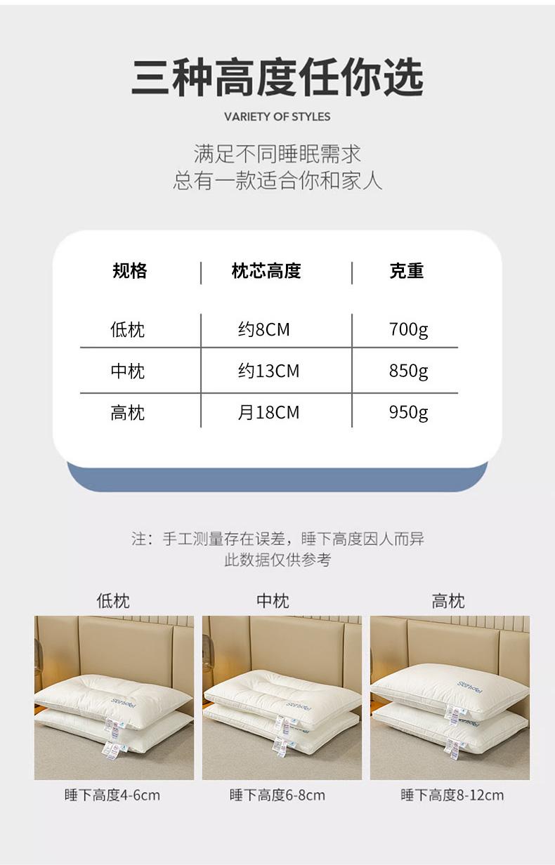 Almohada Núcleo de Almohada Hogar Protección de la Columna Cervical para Ayudar a Dormir Traje de Par Dormitorio de Estudiantes Almohada Baja Súper Suave Especial para Hotel 1172