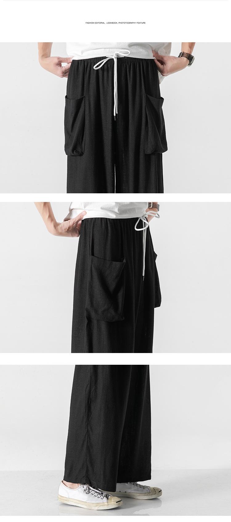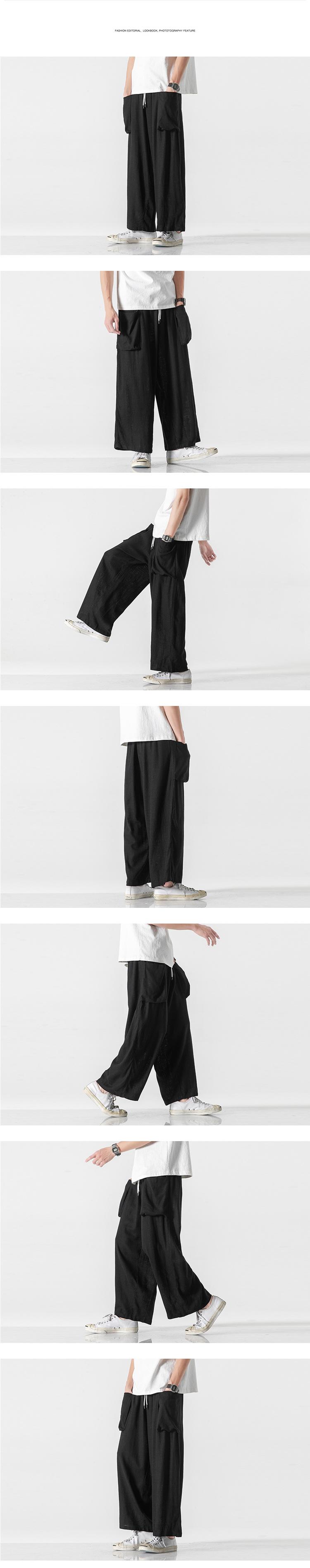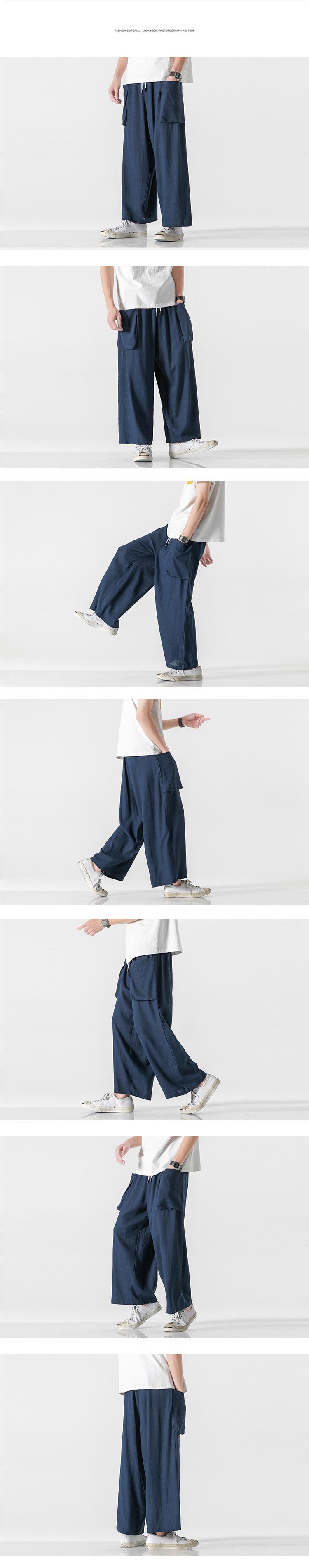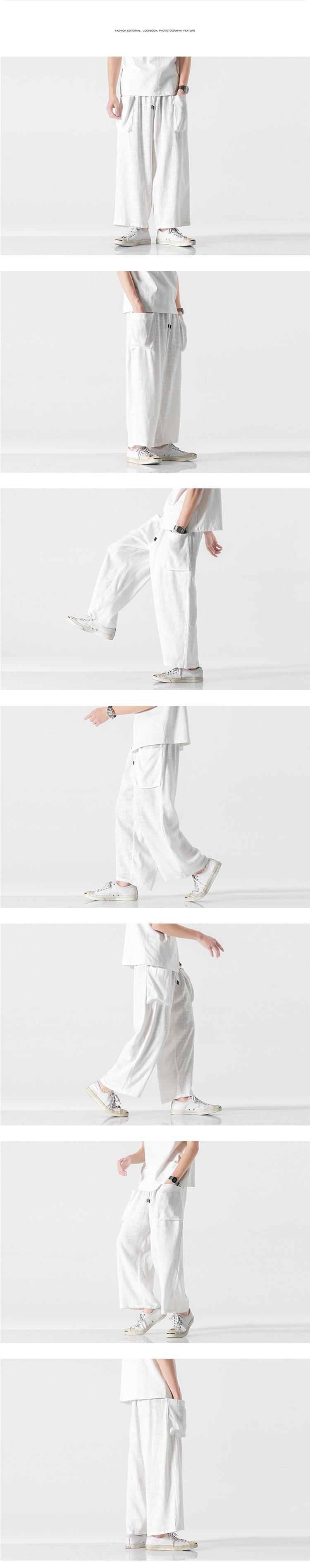 2021 Verano Nuevo Estilo Chino Algodón y Lino Pantalones Casuales para Hombre Retro Talla Grande Modernos Lino Pierna Ancha Largo al Tobillo
