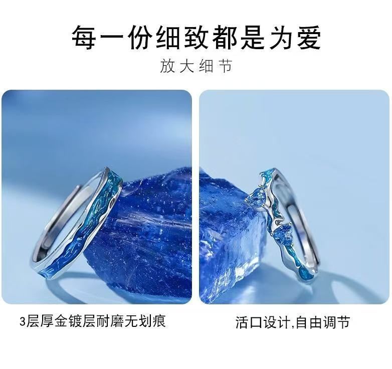 Compra Anillos de Pareja Azul Klein Un Par Anillos de Nicho a Juego para Hombre y Mujer 2025 Nuevo Regalo de San Valentín para Novio al por mayor en Joom.pro