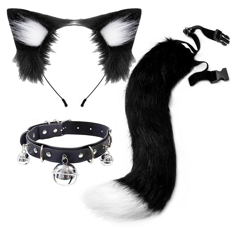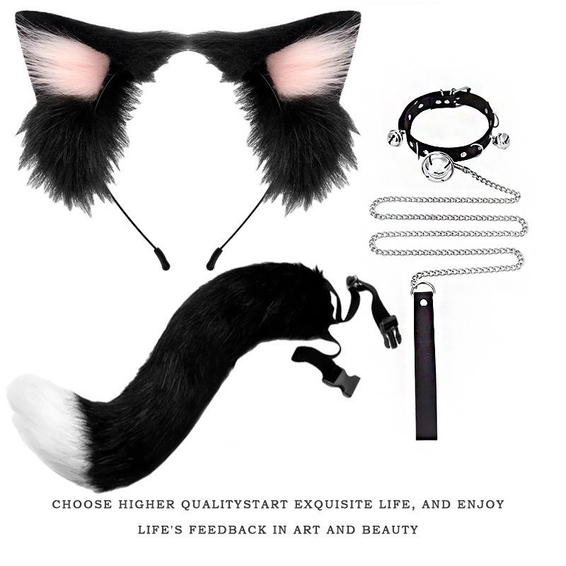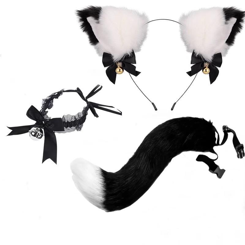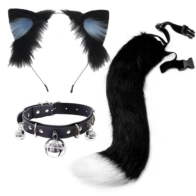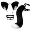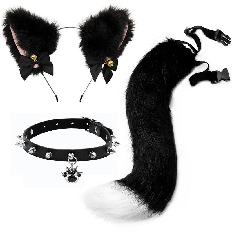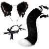 Cosplay diadema de orejas de gato accesorios cola de gato hechos a mano lindos orejas de animal de chica gato accesorios para el cabello cola de animal conjunto de accesorios