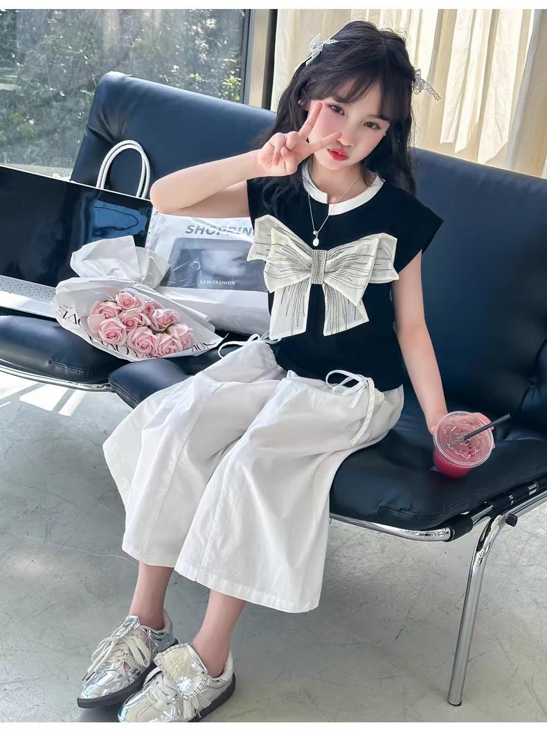 Ropa de Verano para Niñas 2024 Nuevo Traje de Moda Chaleco sin Mangas para Niñas Conjunto de Dos Piezas Niños Grandes Verano Ropa Infantil