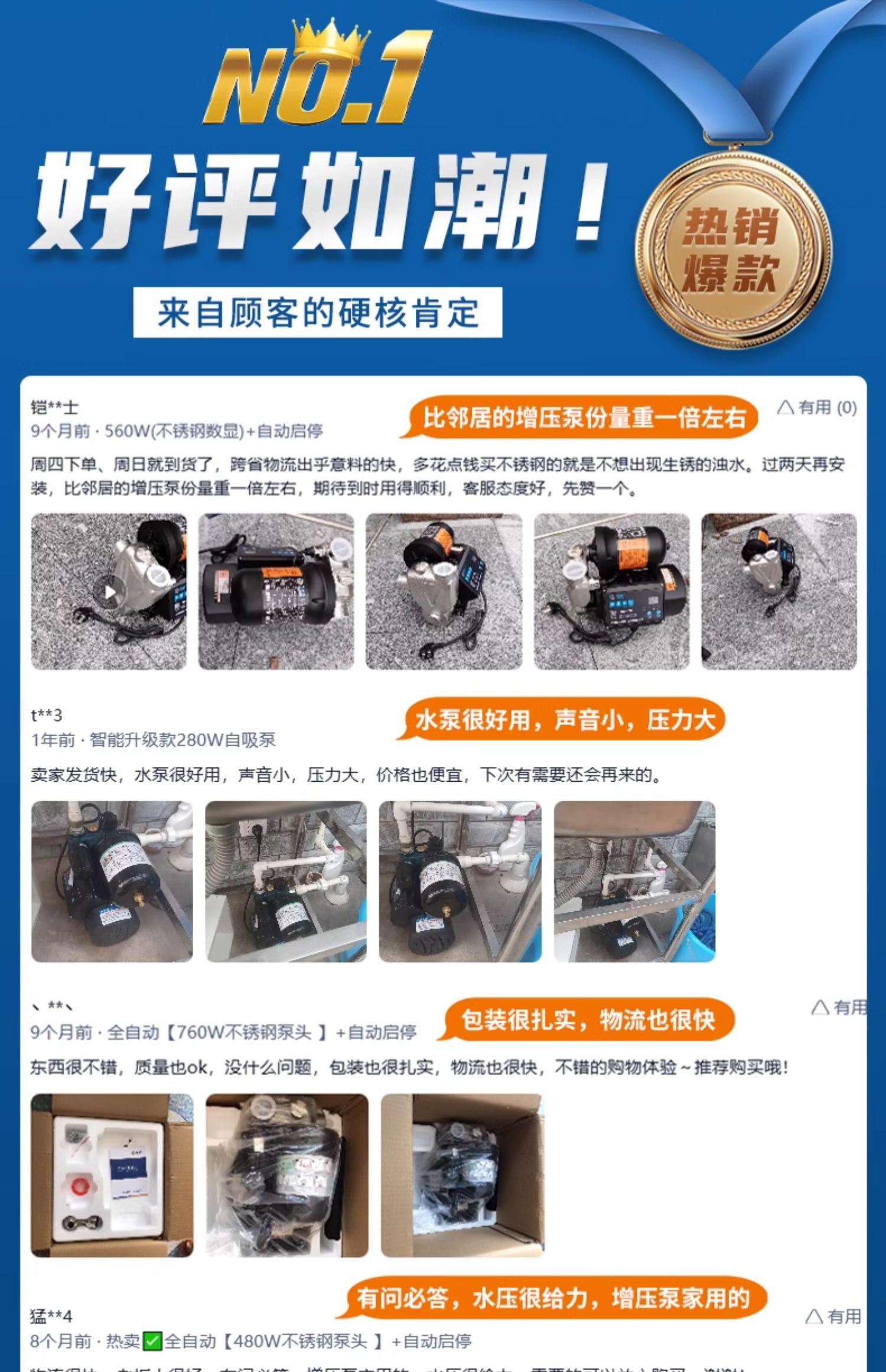 Bomba Elevadora Doméstica Bomba Autocebante de Agua de Grifo Bomba de Agua Inteligente para Tubería Bomba de Presurización Totalmente Automática