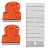 yellow plastic scraper, Orange metal small spatula, 2 yellow plastic spatulas + 10 plastic blades, 2 orange me...