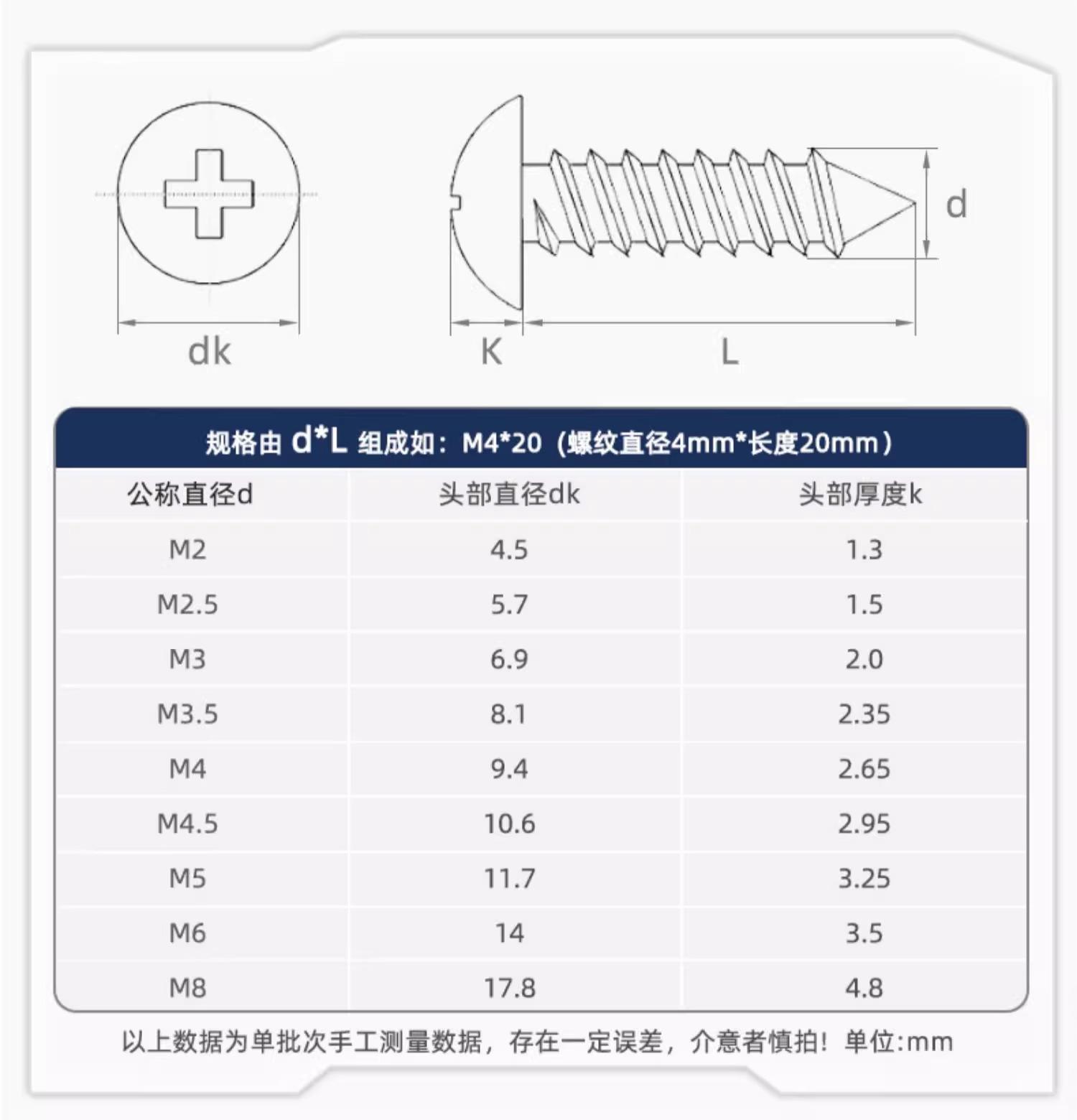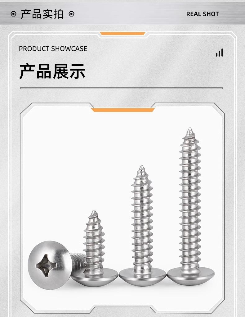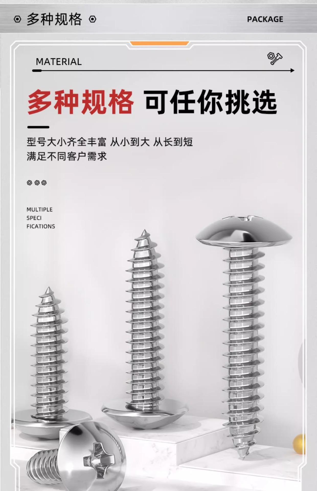 Tornillo de rosca de cabeza plana grande en cruz de acero inoxidable 304, tornillo de madera con cabeza de hongo, cabeza plana, cabeza de paraguas, cabeza redonda M3M4M5M6
