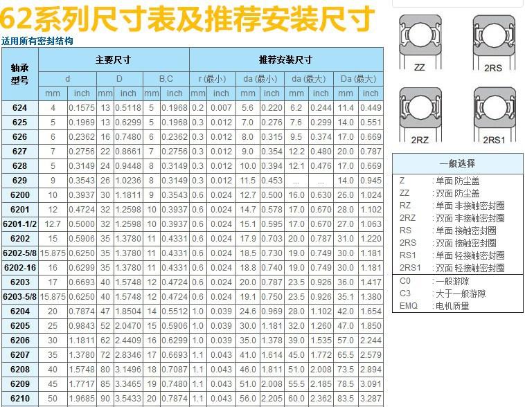 Principales modelos de rodamientos de Cixi Angke Bearing Co., Ltd.: