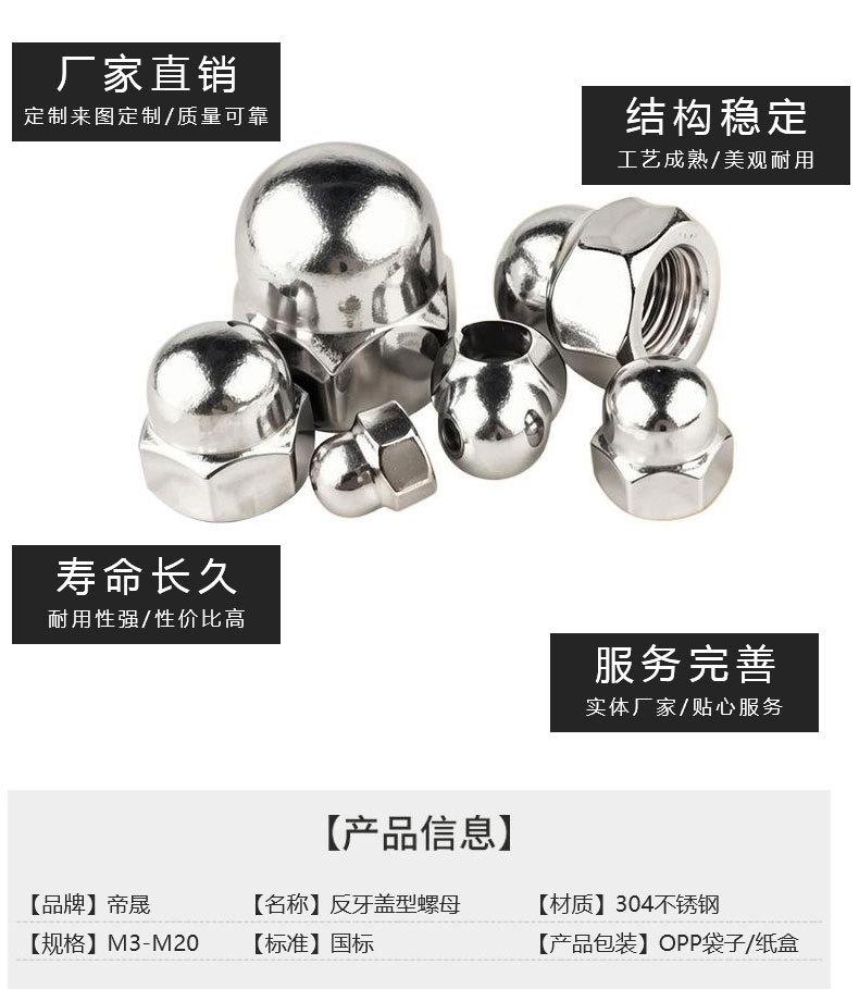 Tuerca de Cabeza Redonda de Acero Inoxidable 304 Tuerca Ciega Zurda Tapa de Tornillo Decorativa Tuerca Ciega Rosca Inversa M6-M20