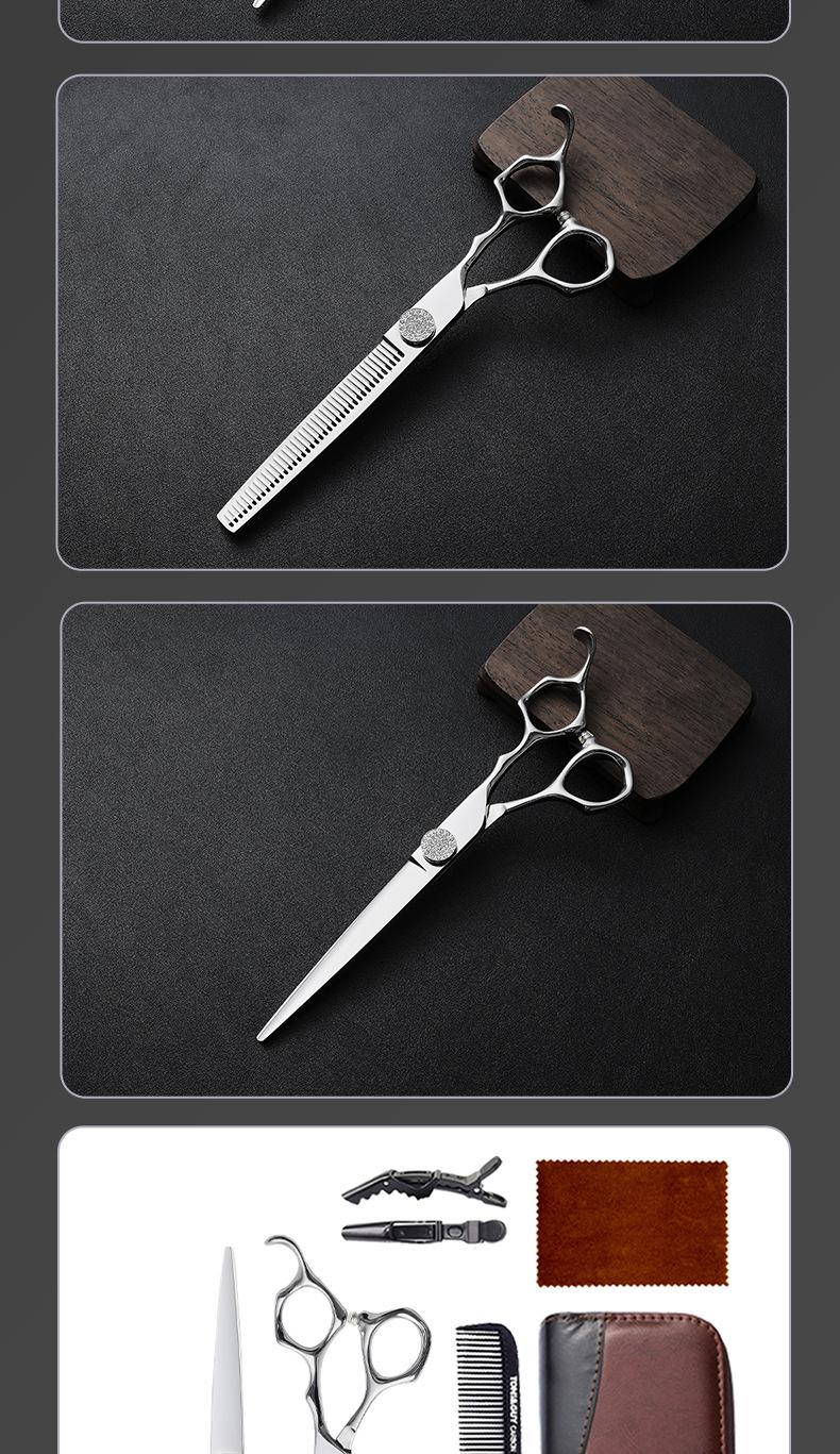 112 7 inch silver set (7 inch flat scissors + 6.5 inch v-tooth thinning scissors))