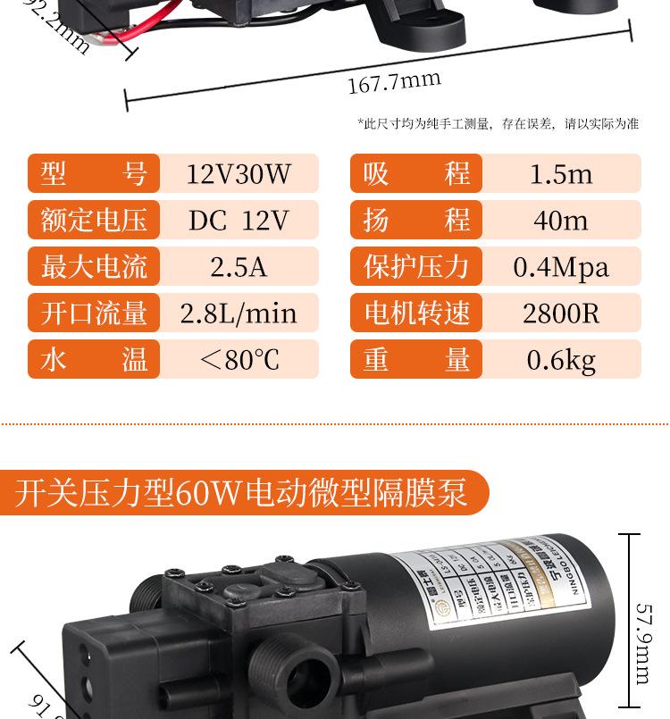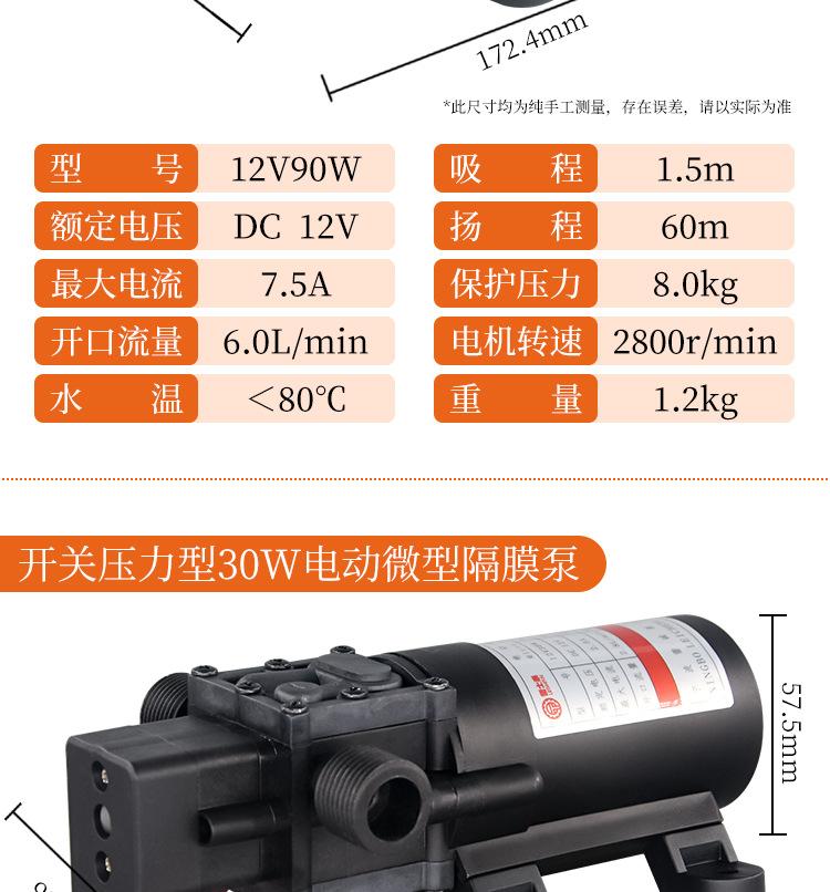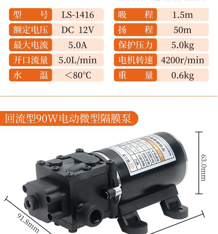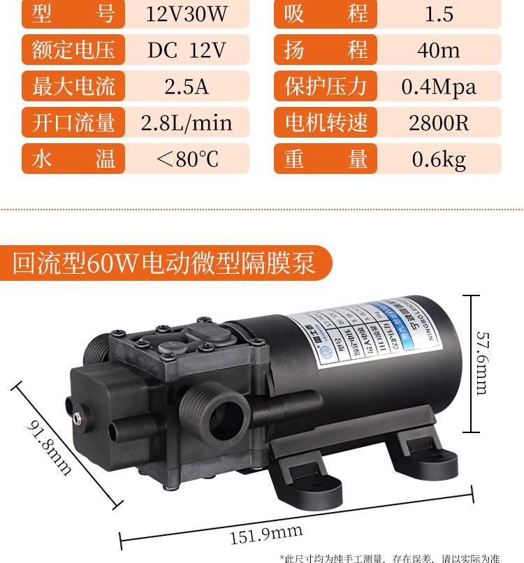 Backflow type 12V self-priming water pump 90W (with accessory package)