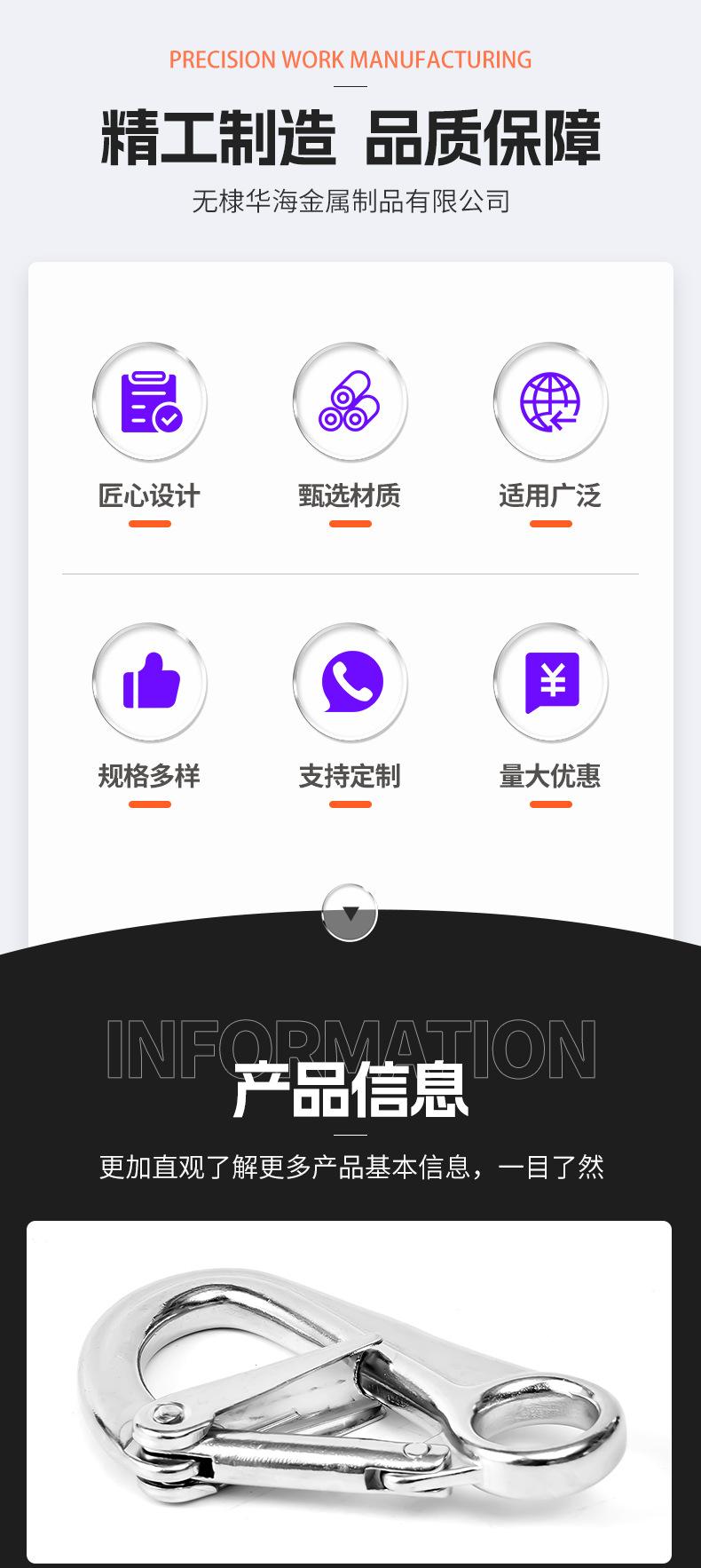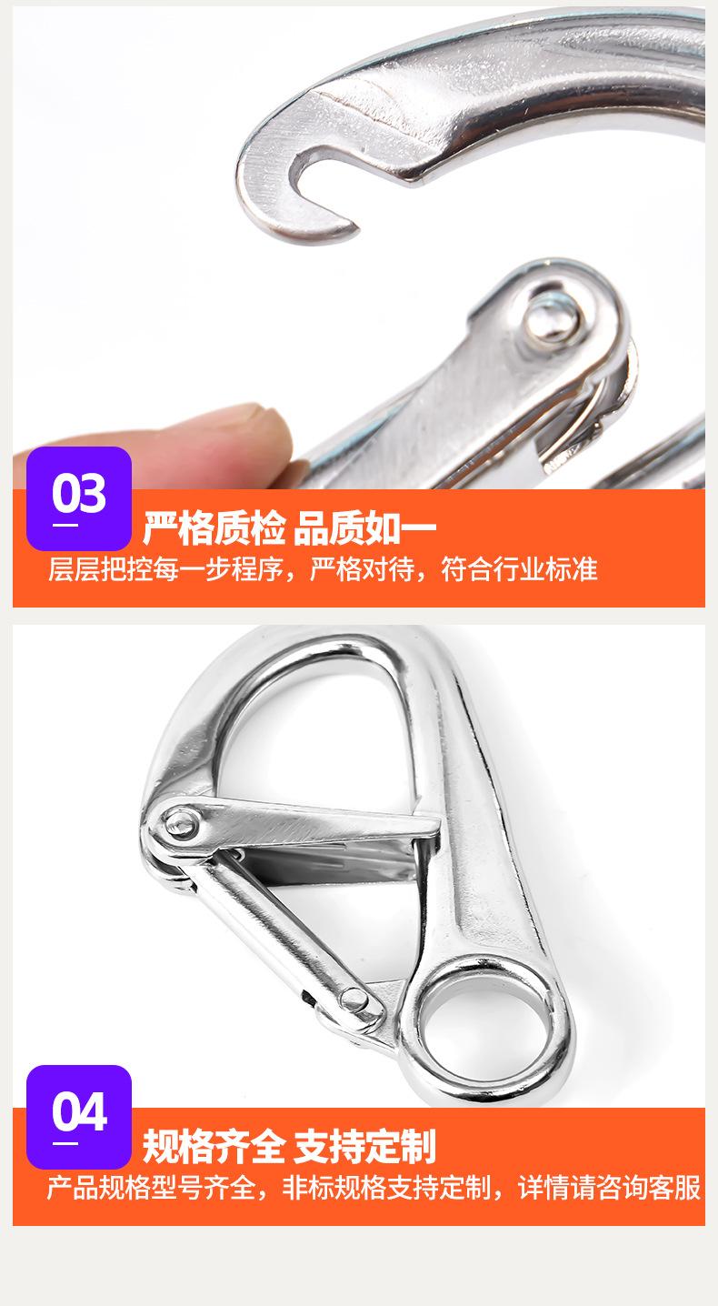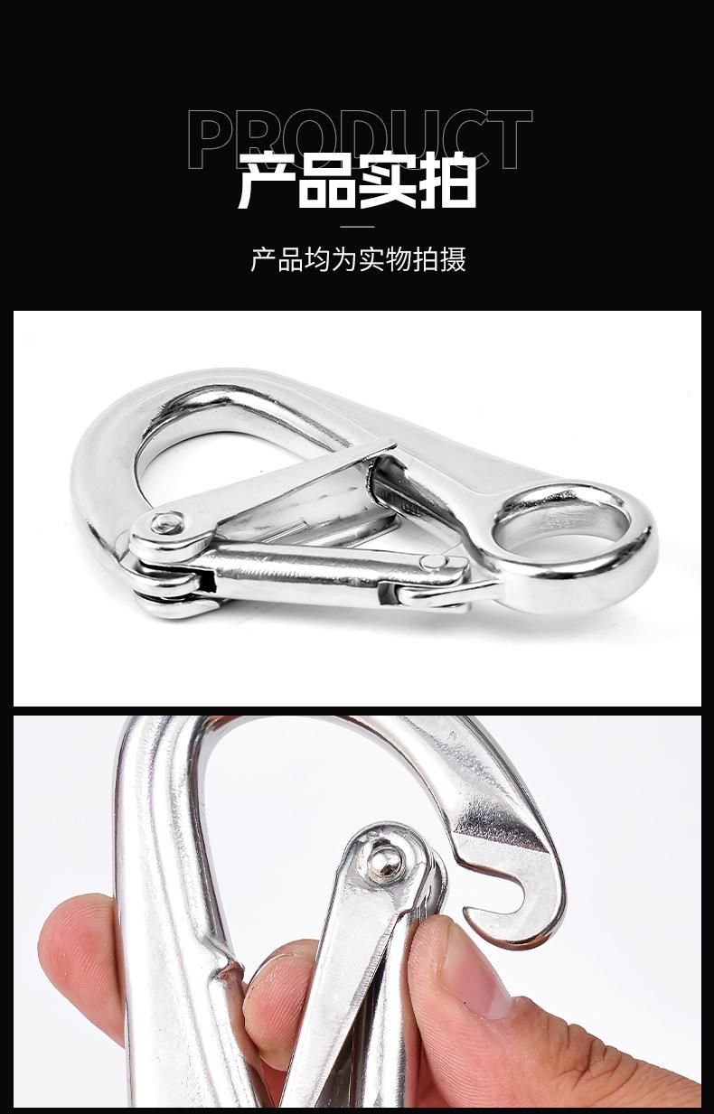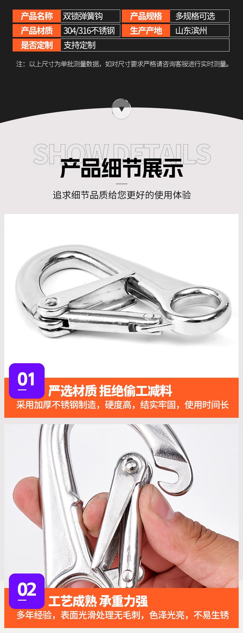 Mosquetón de resorte de doble bloqueo de acero inoxidable 304/316 de seguridad hebilla de resorte de seguridad doble bloqueo de seguridad