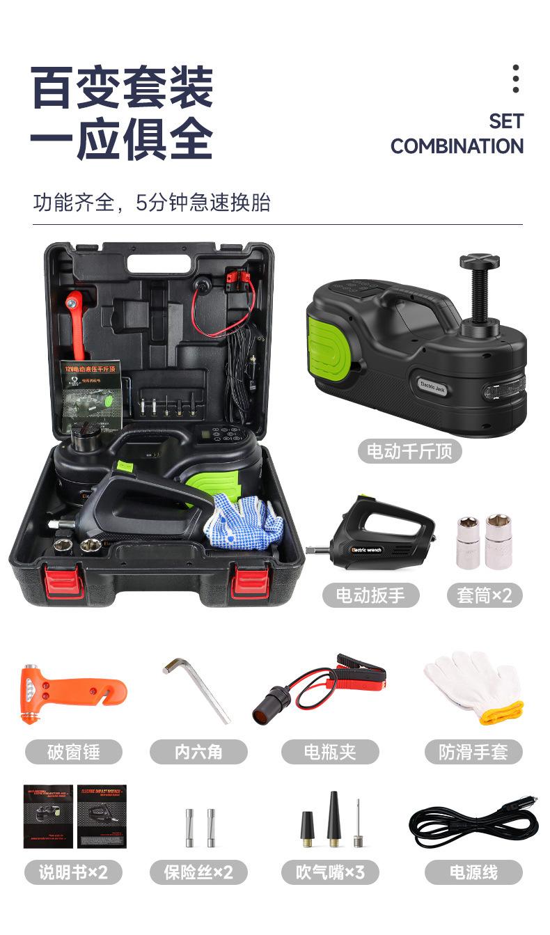 Juego de Gato Hidráulico Eléctrico de 5T a Bordo 12V Bomba de Inflado para Cambio de Neumáticos Llave de Impacto Eléctrica Gato para Coche
