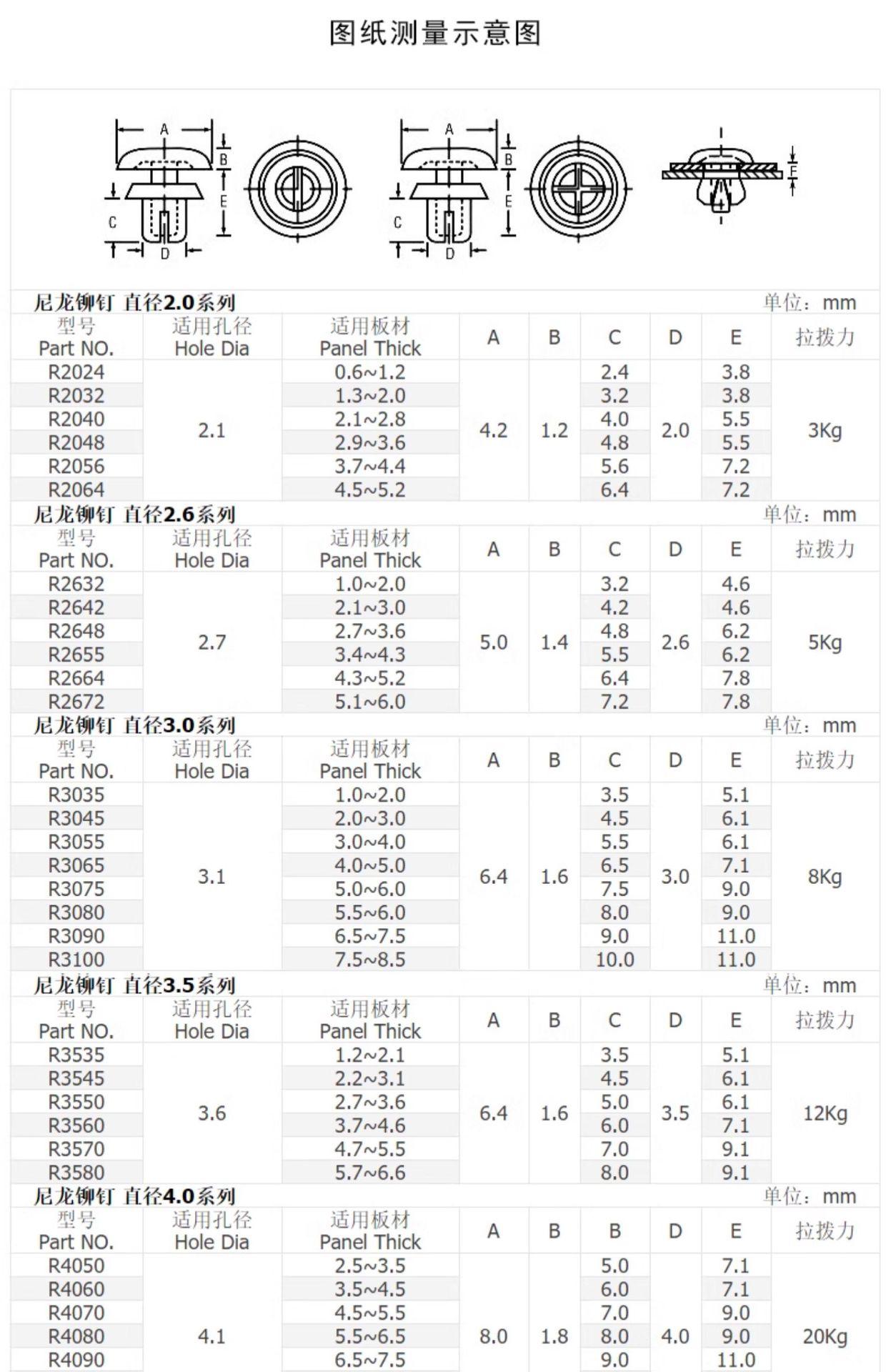 Remaches de nailon Remaches tipo R Sujetadores de plástico tipo push Remaches macho-hembra Remaches de plástico para placas de PC R2R3R4R5R6