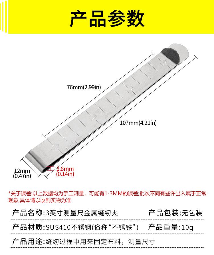 Regla de Medición de 3 pulgadas Clip de Costura de Metal Suministros de Marcado de Fijación DIY con Escala Clip de Acolchado Individual Regla de Fijación