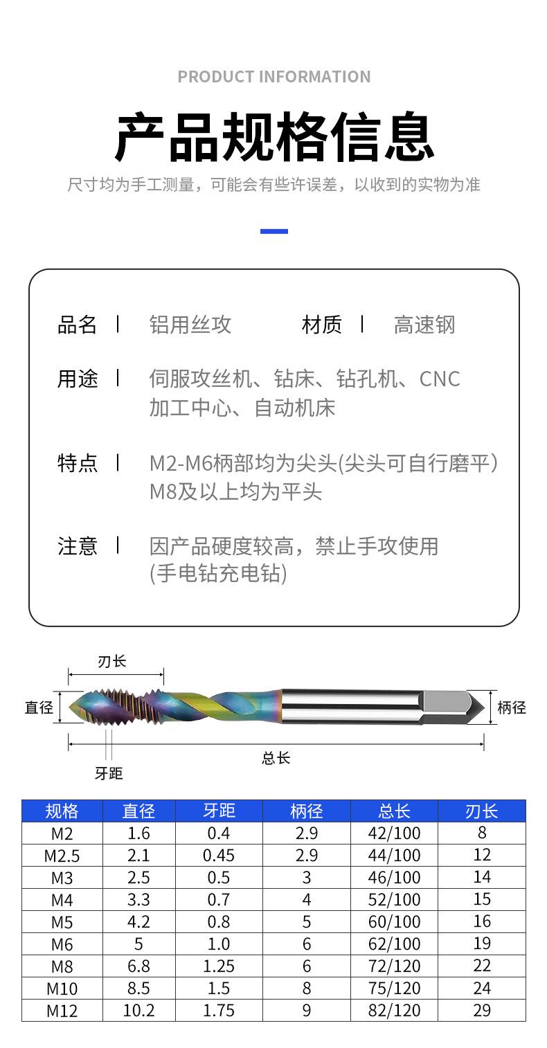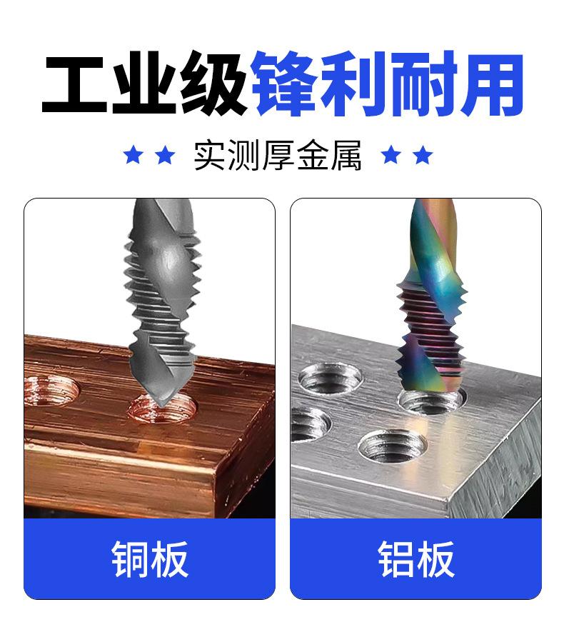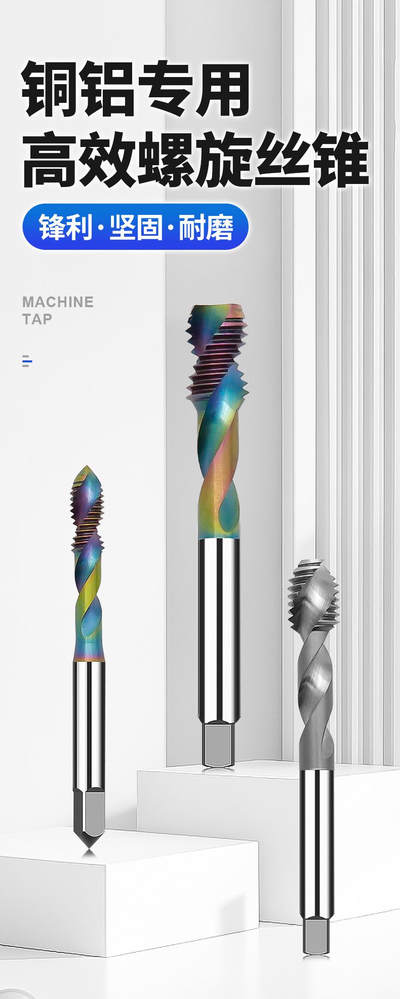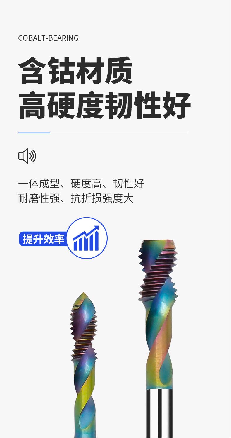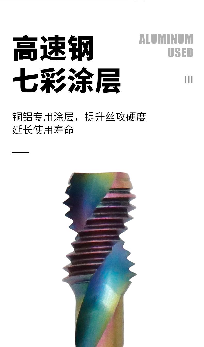 Macho de acero rápido con recubrimiento de siete colores y cobalto para roscar aluminio M2-M12, resistente al desgaste, macho de flauta espiral
