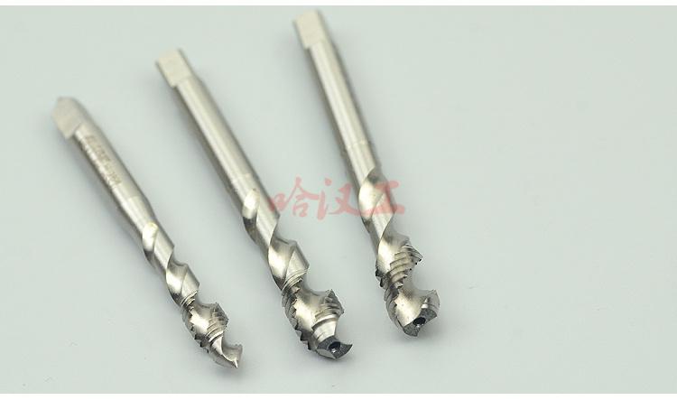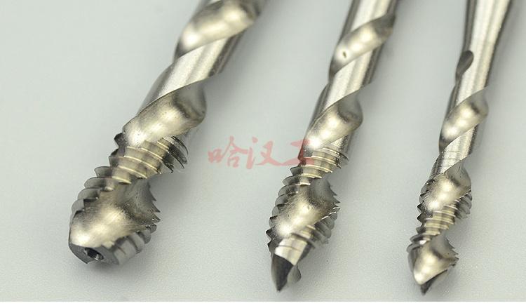 Machuelo helicoidal específico para aluminio para roscar materiales de aluminio, debido a la naturaleza especial del aluminioSexo (más suave y pegajoso, no remueve fácilmente las virutas, causando obstrucción de machos, desgaste, rotura, etc.)Los machos para aluminio tienen solo dos ranuras para la evacuación de viruta en comparación con los machos helicoidales regulares, y ademásEl procesamiento profundo y ancho tiene un buen efecto en la descarga continua de virutas al cortar aluminio. PorqueUna flauta helicoidal derecha que corta a aproximadamente 35° puede descargar virutas desde el interior del agujero hacia afuera, y la velocidad de corte puede ser mayor que la recta.Los machos acanalados son 30%-50% más rápidos, en comparación con los machos ordinarios porque sus ranuras para virutas son más profundas y másAncho para que no se atasque fácilmente con virutas, y los machos no se rompan fácilmente. En segundo lugar, la longitud efectiva de rosca de los machos específicos para aluminioReducido a 1/3 de un grifo normal, también es muy eficaz para el mecanizado de agujeros profundos.
