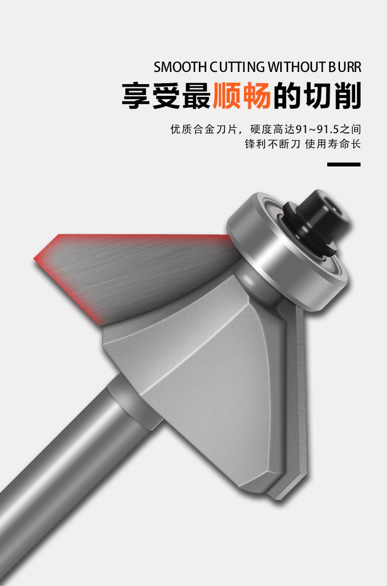 Cuchillo biselado de 45 grados fresa para carpintería enrutador recortador de bordes cabezal de corte para máquina de grabado cortador de chaflán de 45 grados cortador para redondear bordes cuchillo de recorte