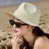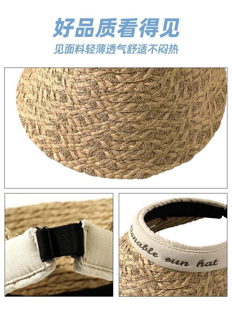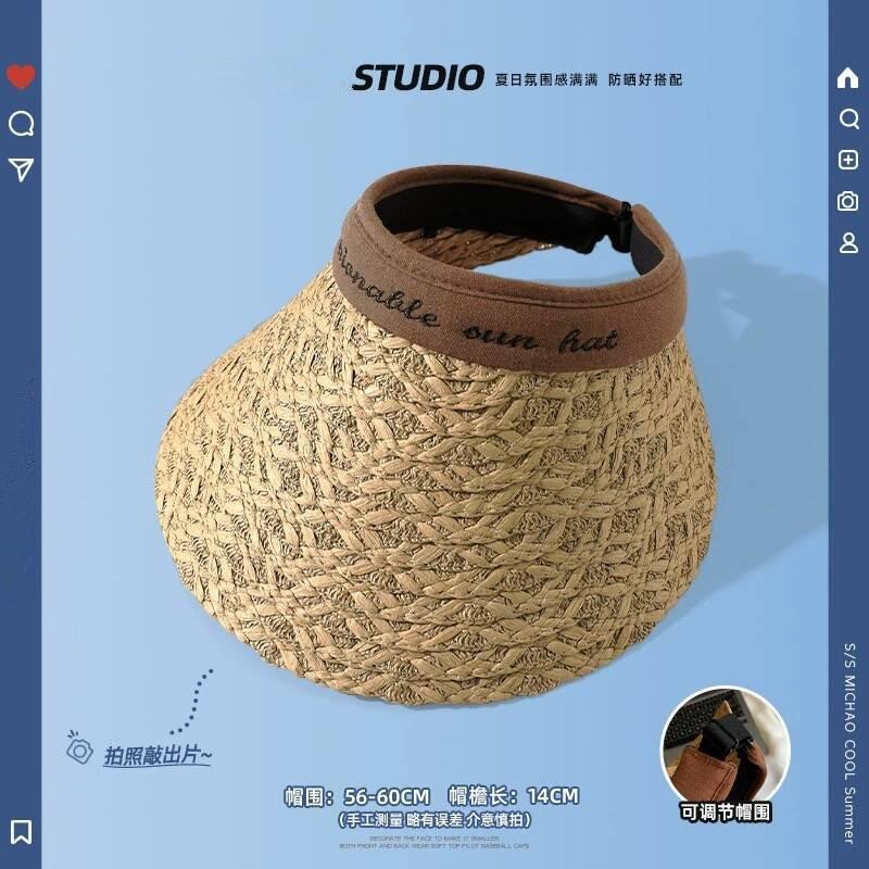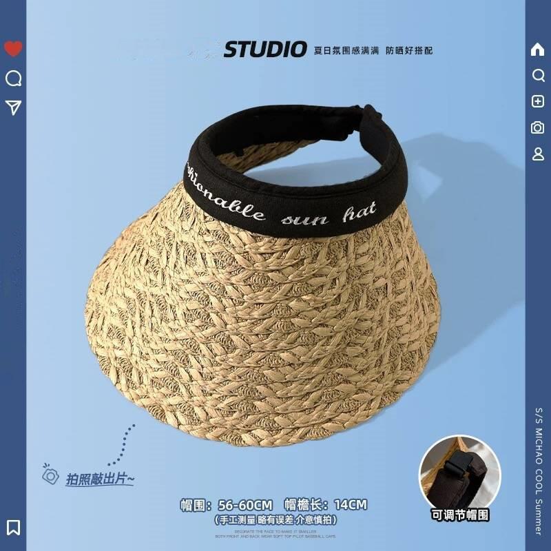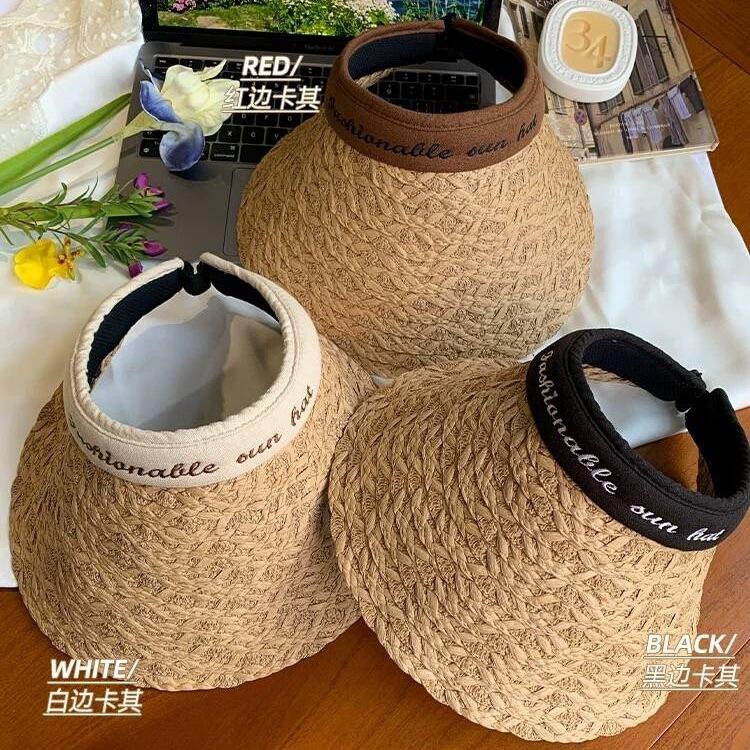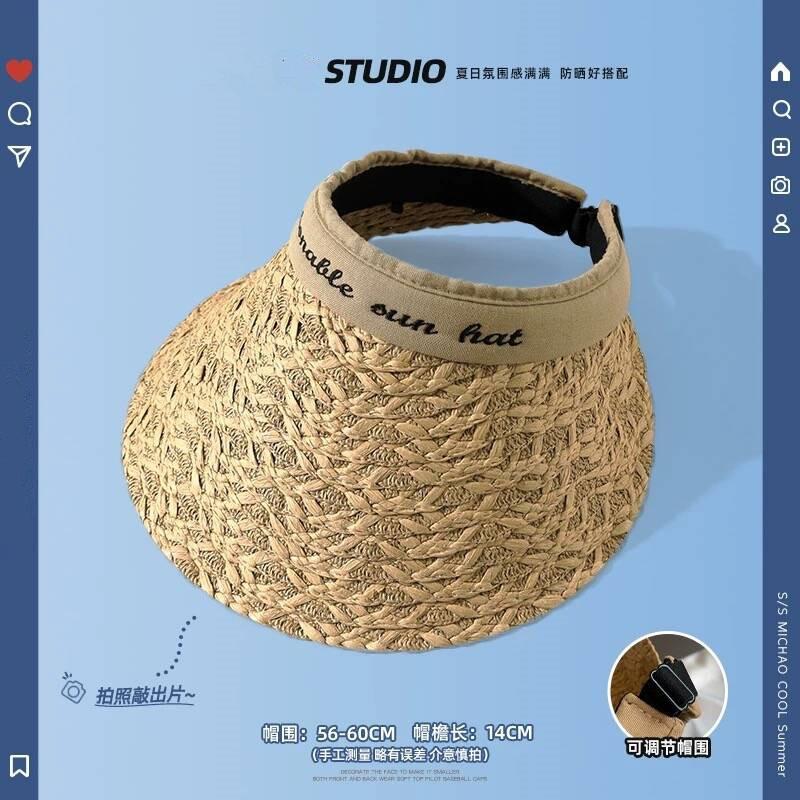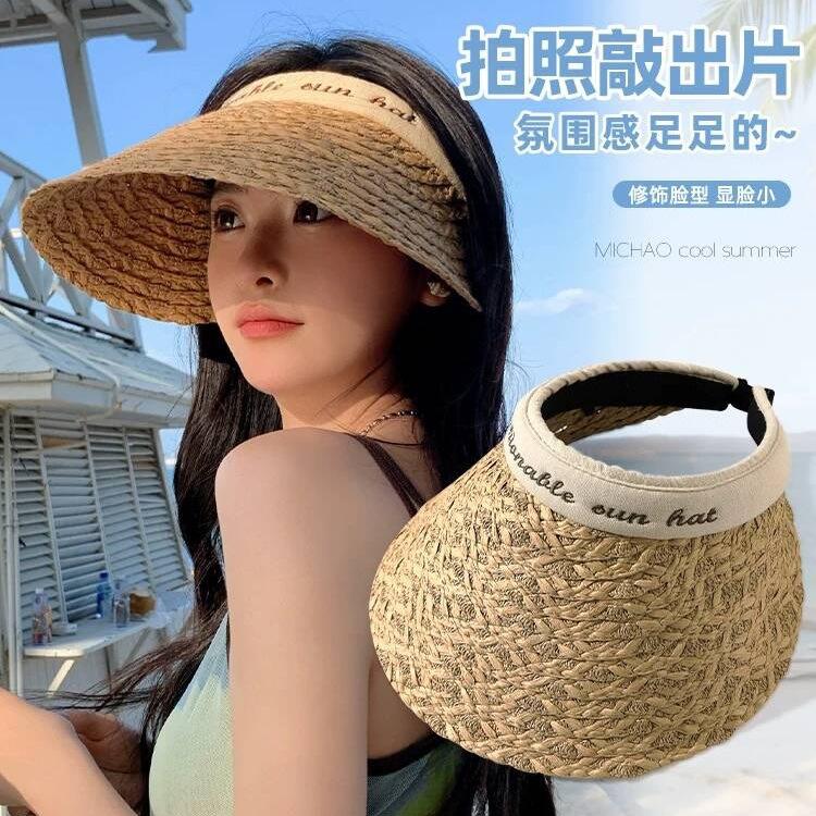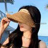 Sombrero de Paja de Rafia para Mujer 2025 Nuevo Sombrero de Sol de Verano de Copa Vacía Vacaciones en la Playa Junto al Mar Sombrero de Sol de Paja