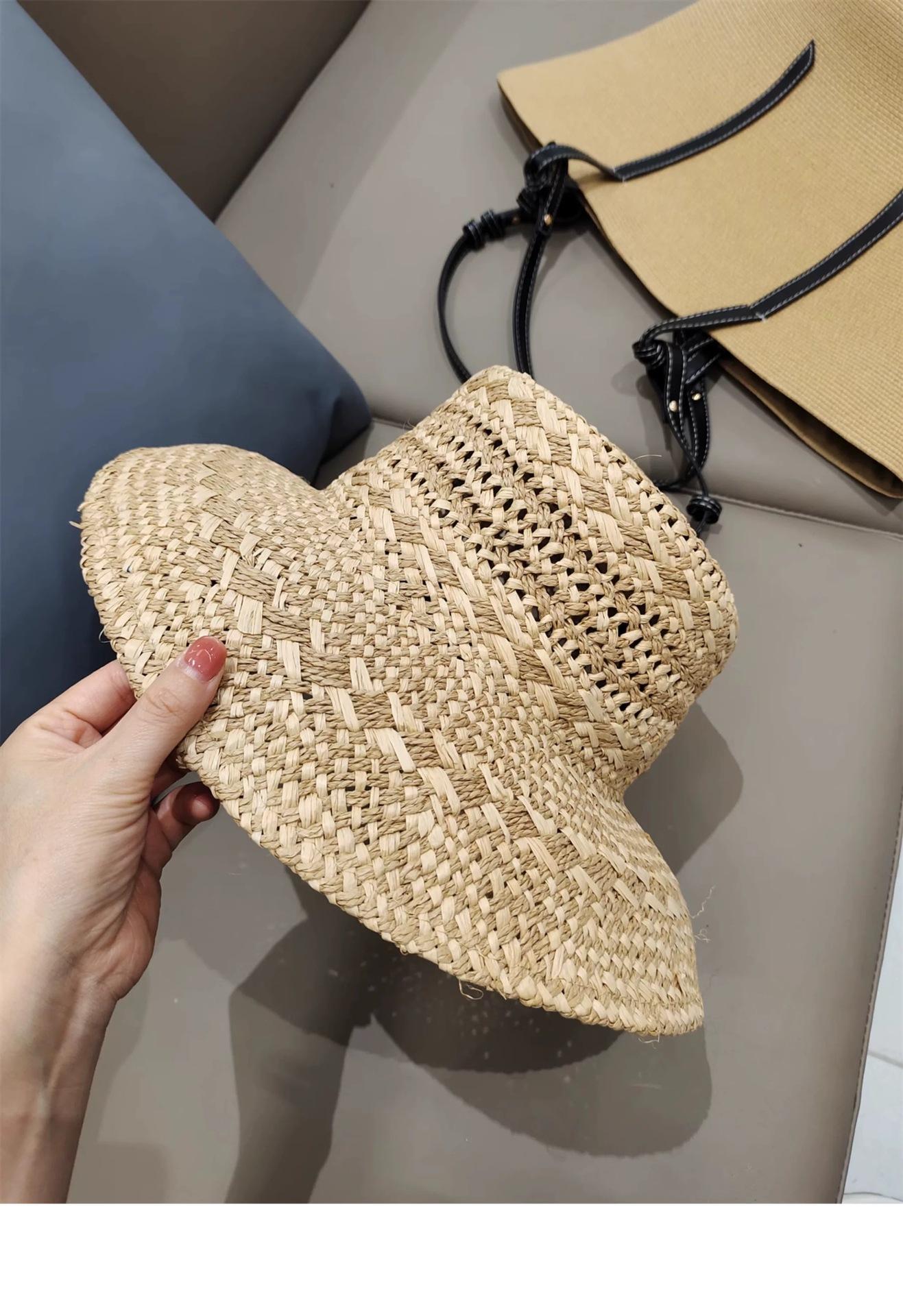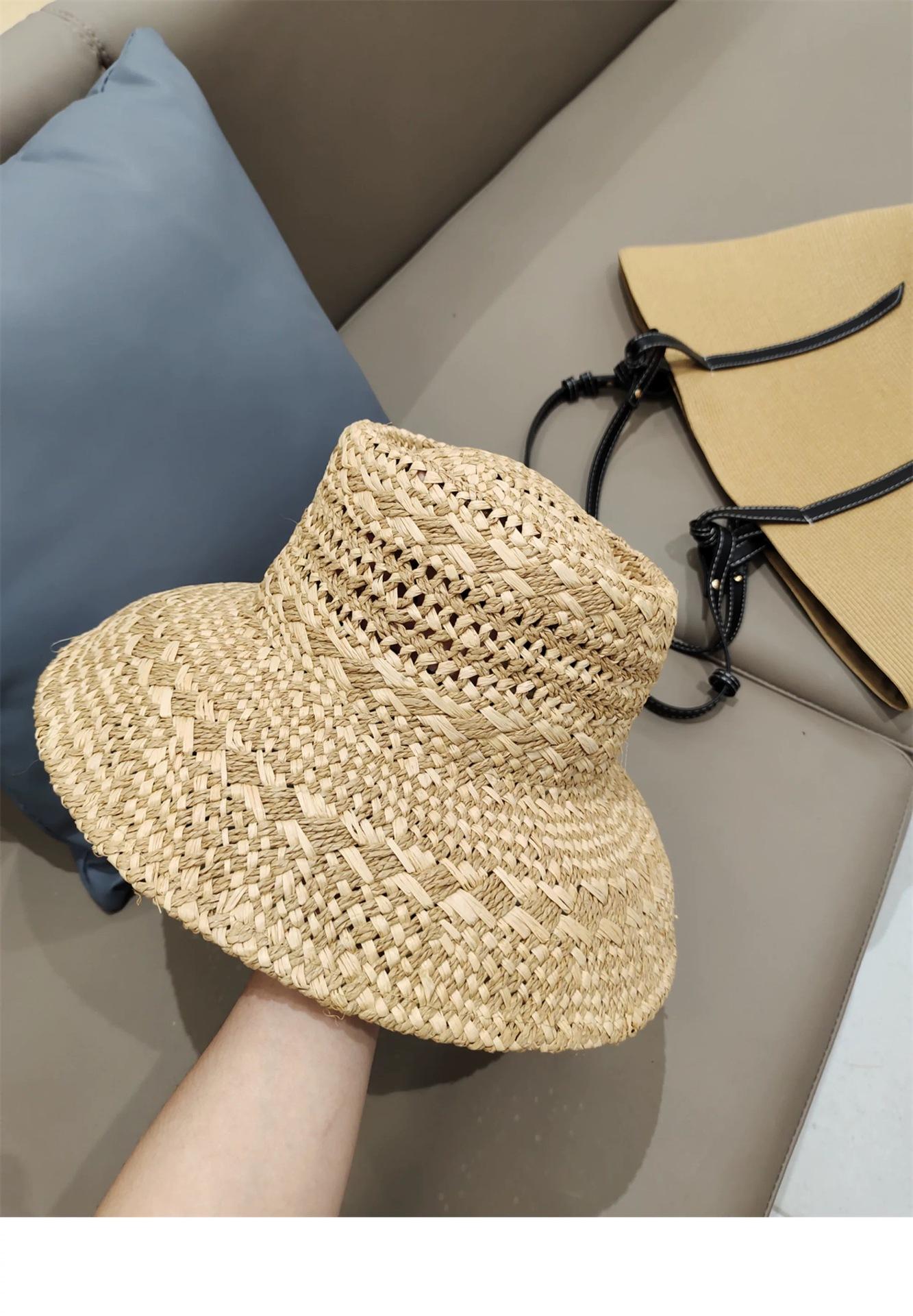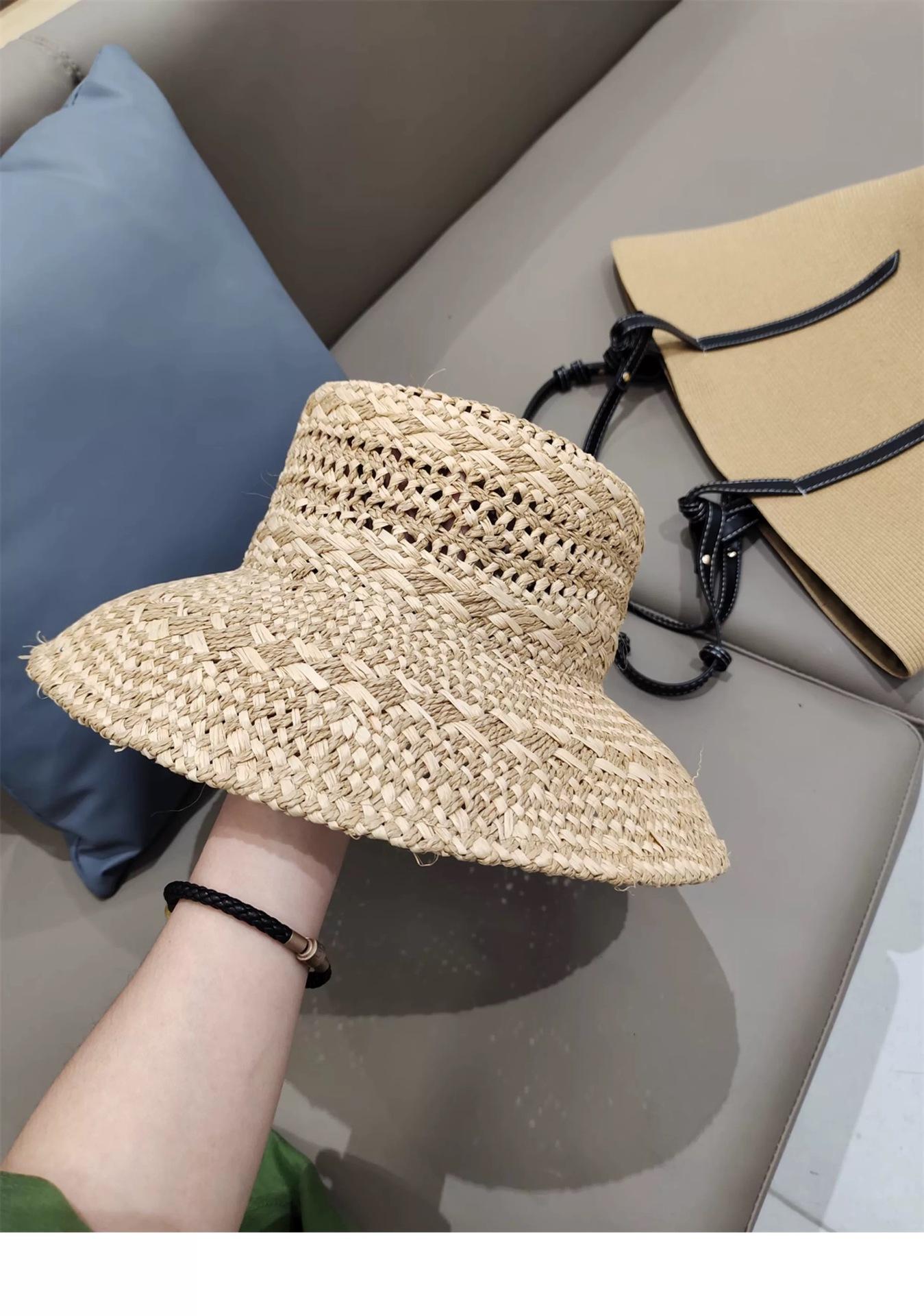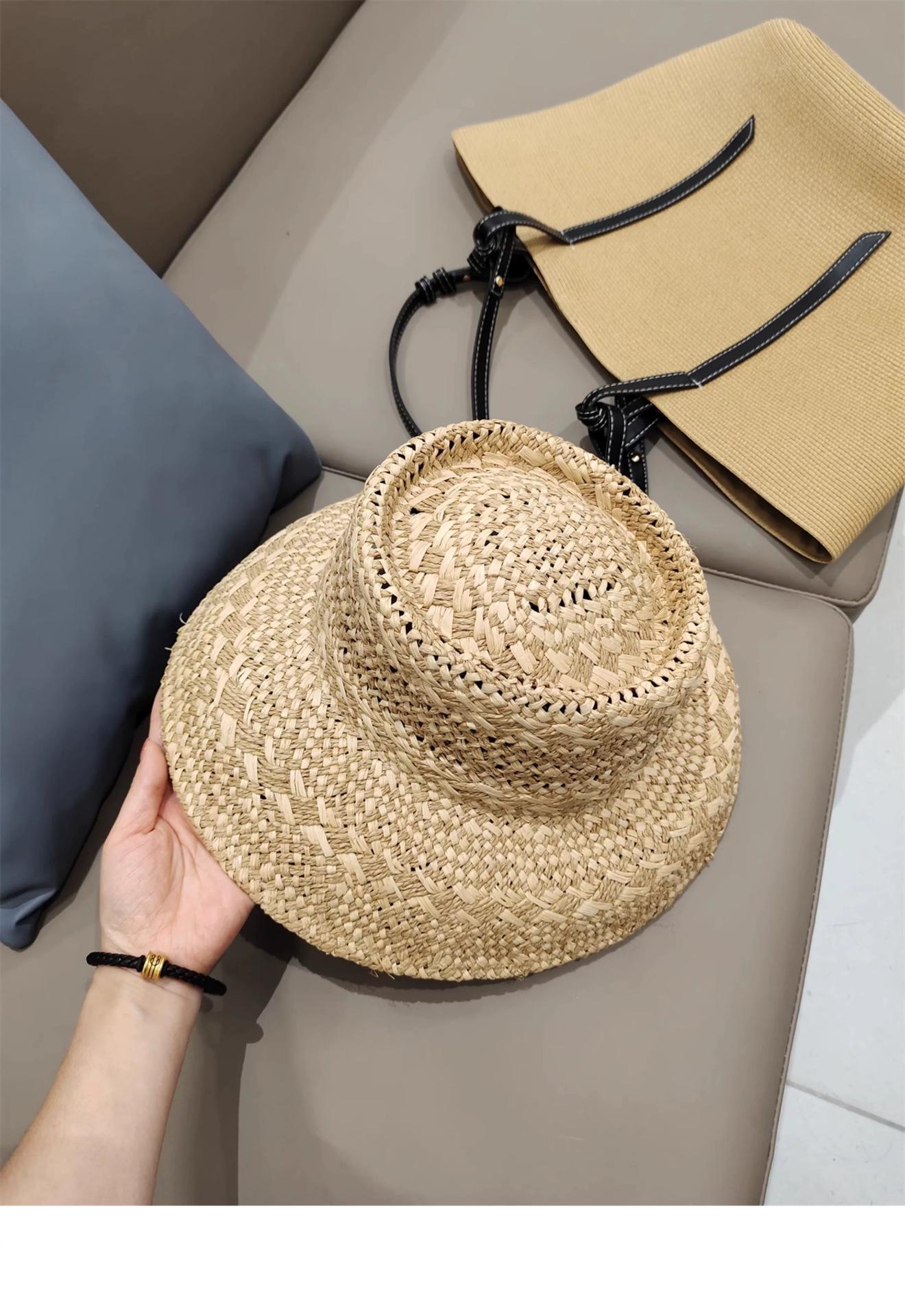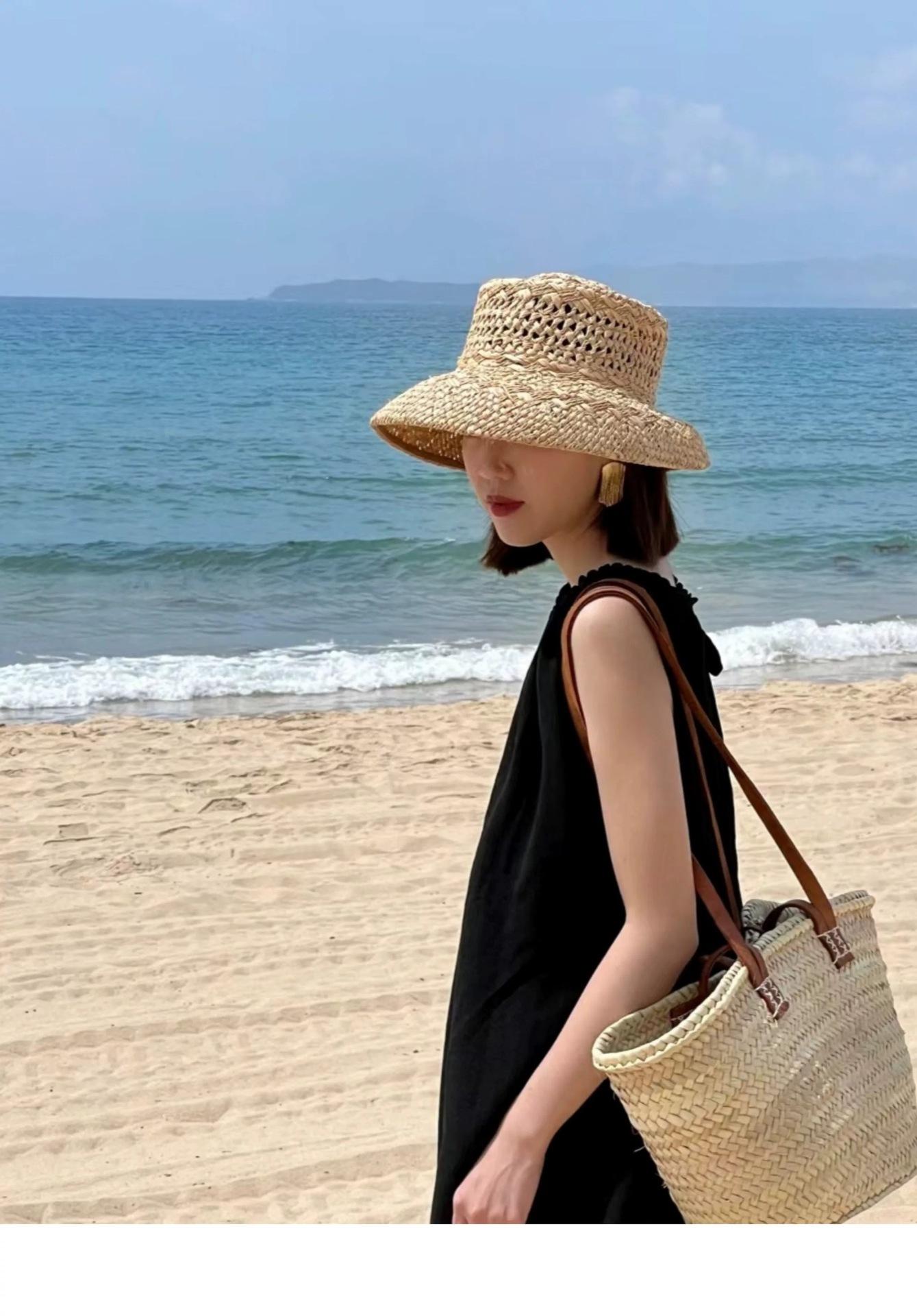 Sombrero de Paja Tejido a Mano Lafayette Estilo Hepburn Francés Vintage para Viaje Vacaciones Protección Solar Sombrero de Playa para Mujer