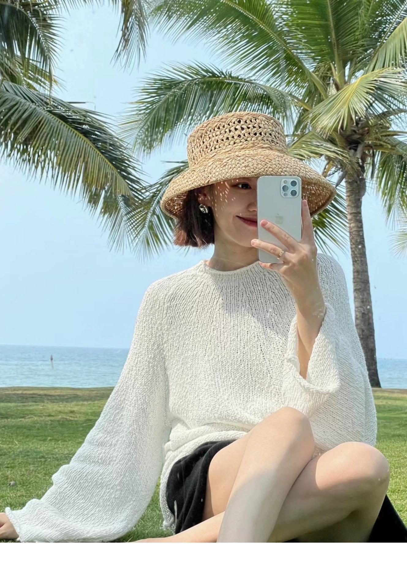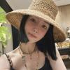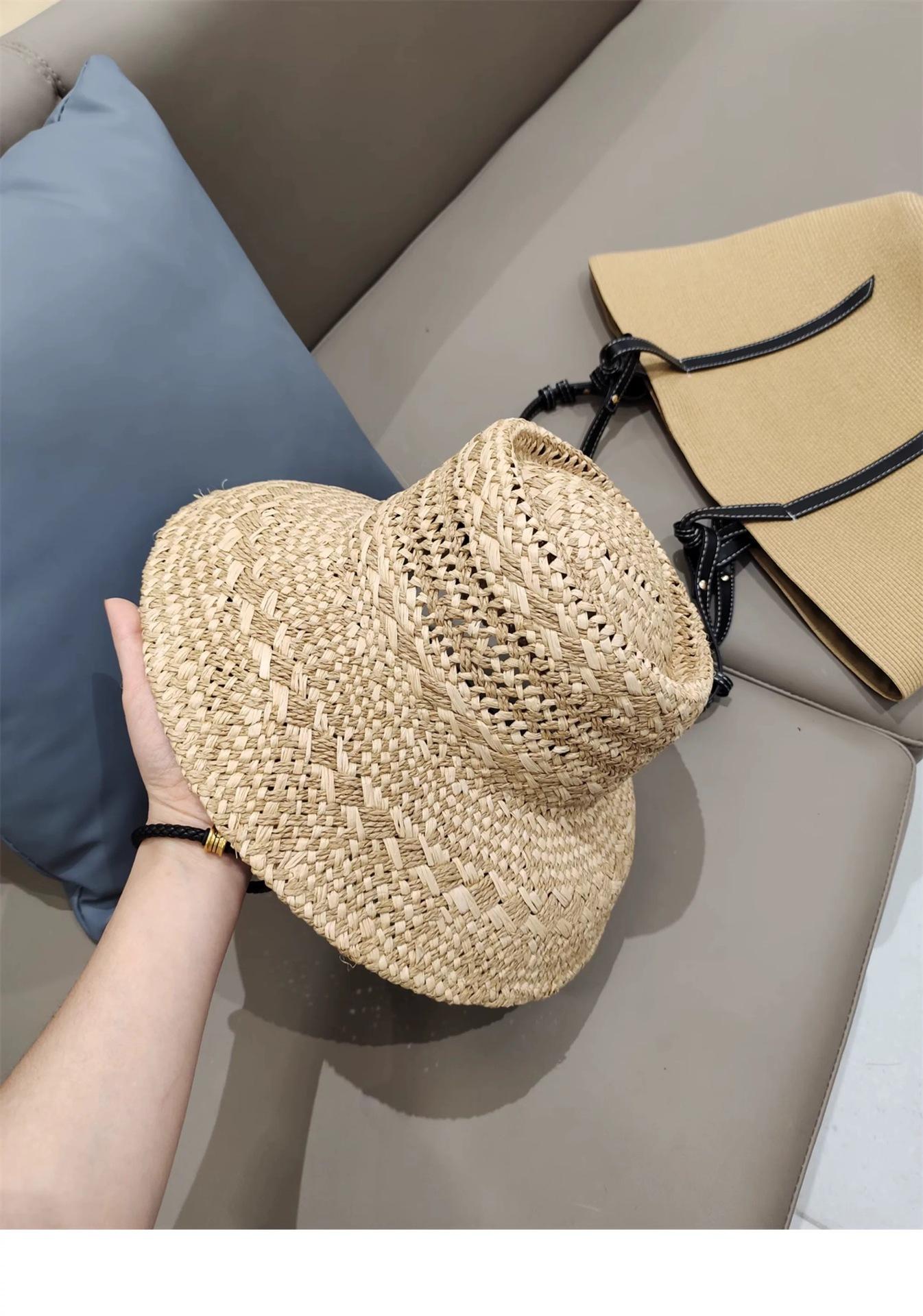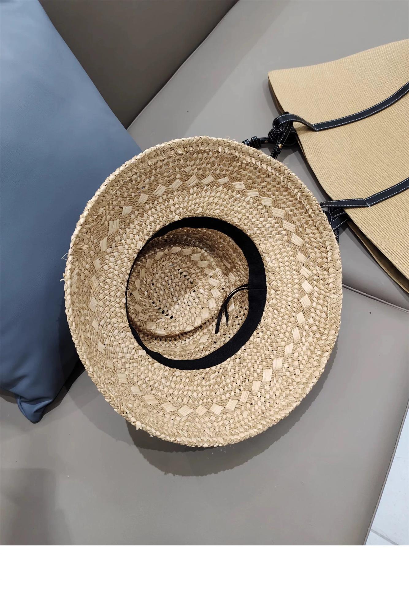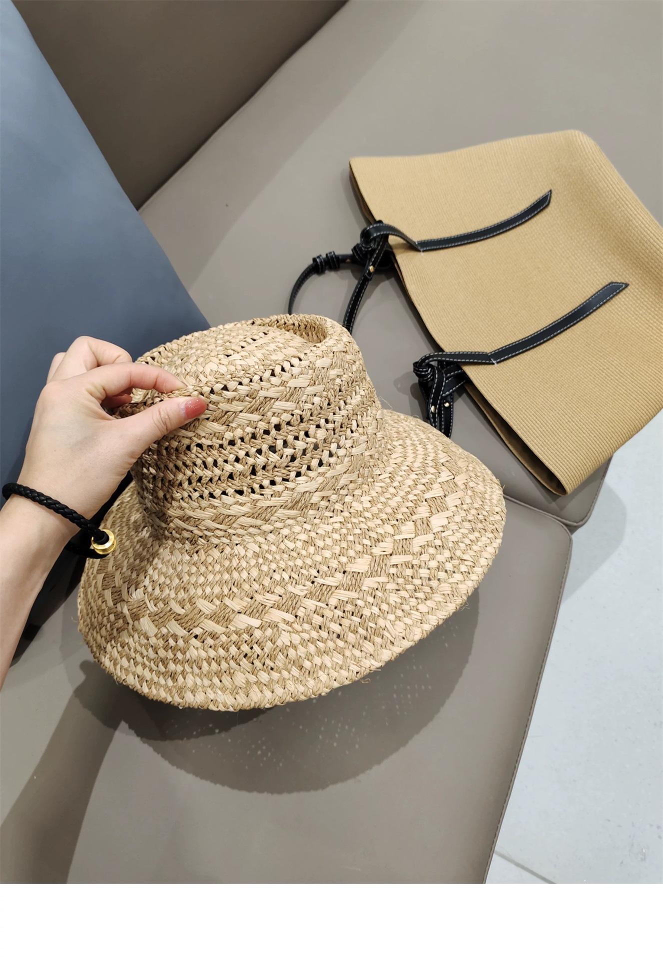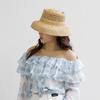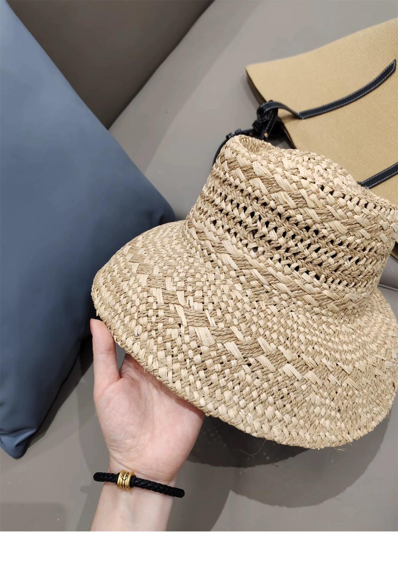 Sombrero de Paja Tejido a Mano Lafayette Estilo Hepburn Francés Vintage para Viaje Vacaciones Protección Solar Sombrero de Playa para Mujer