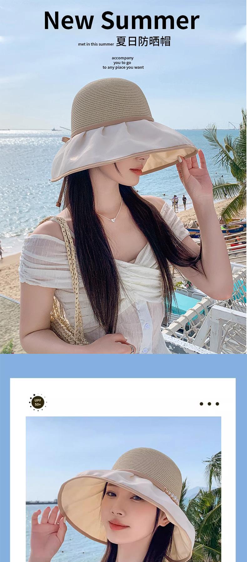 Nuevo sombrero de pescador de verano, de ala ancha, antiultravioleta, para playa, protector solar, parasol, de viaje, para mujer