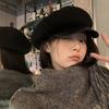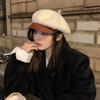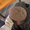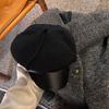 Sombrero octogonal de lana para otoño e invierno, boina negra para mujer, sombrero de vendedor de periódicos con ala de cuero PU coreano, gorra con visera de estilo británico