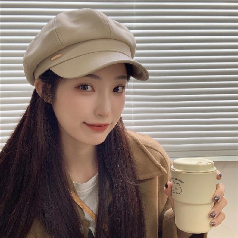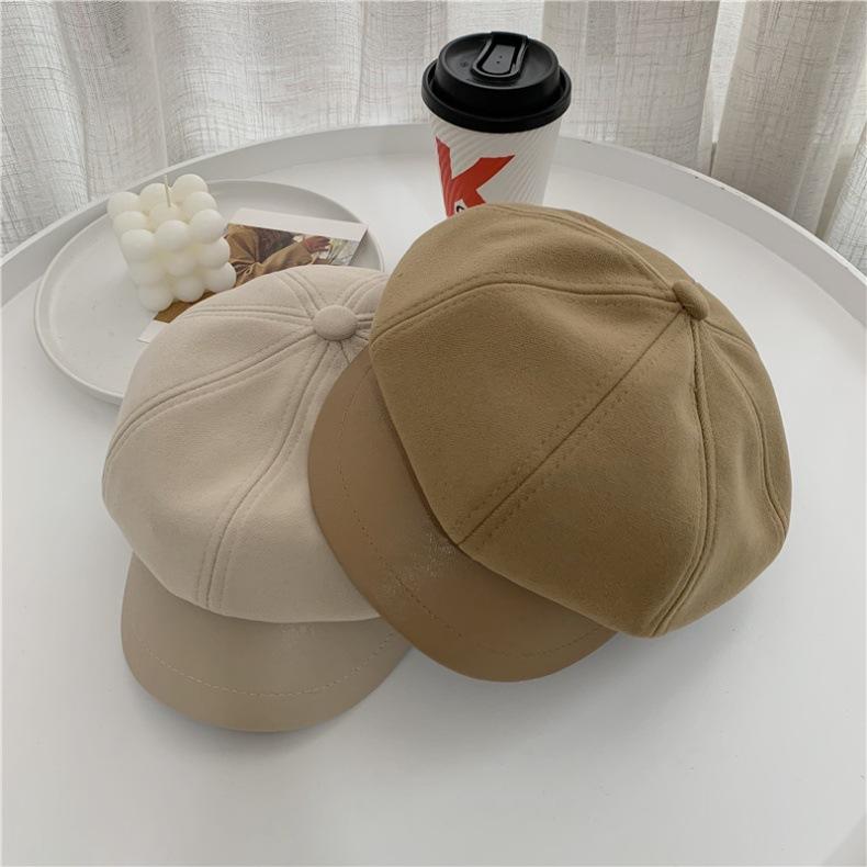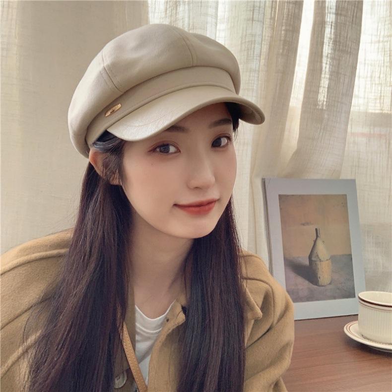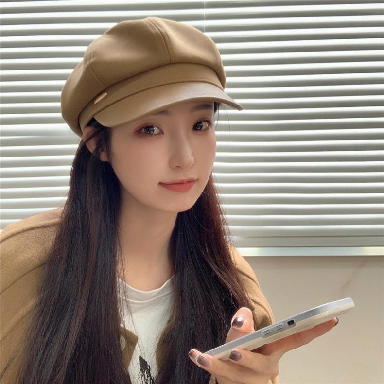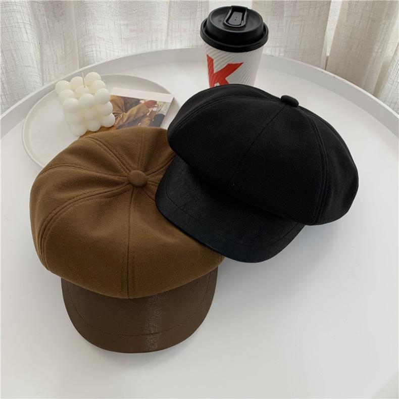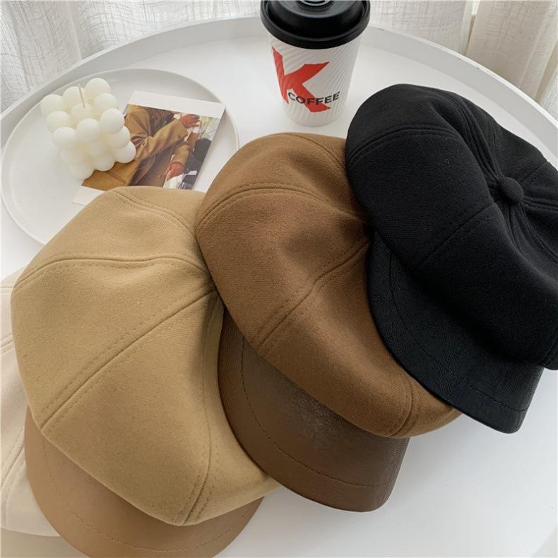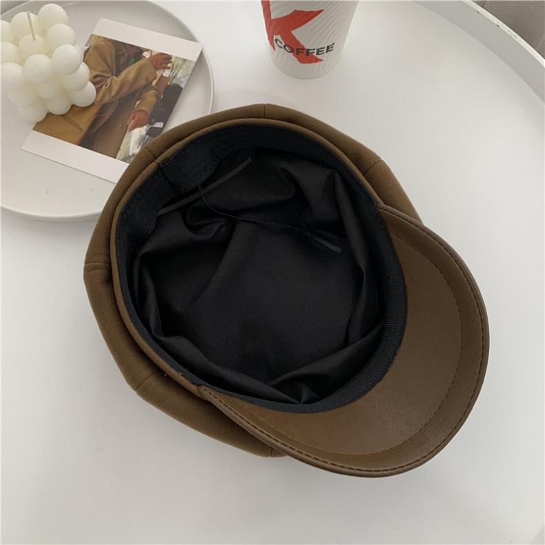 Boina de otoño marrón cálido con costuras de lana sintética para mujer, estilo coreano, otoño e invierno, versátil, retro, elegante, de moda, sombrero octogonal
