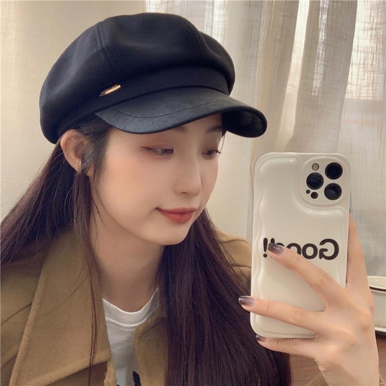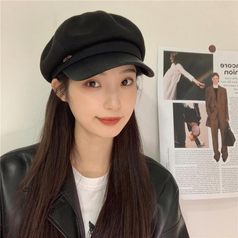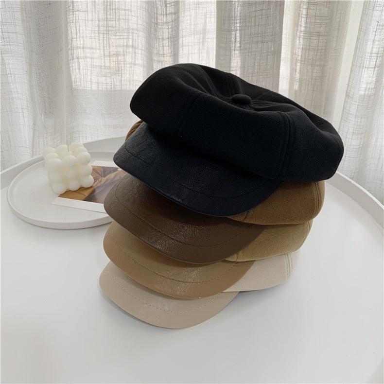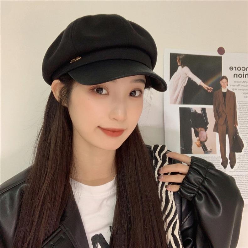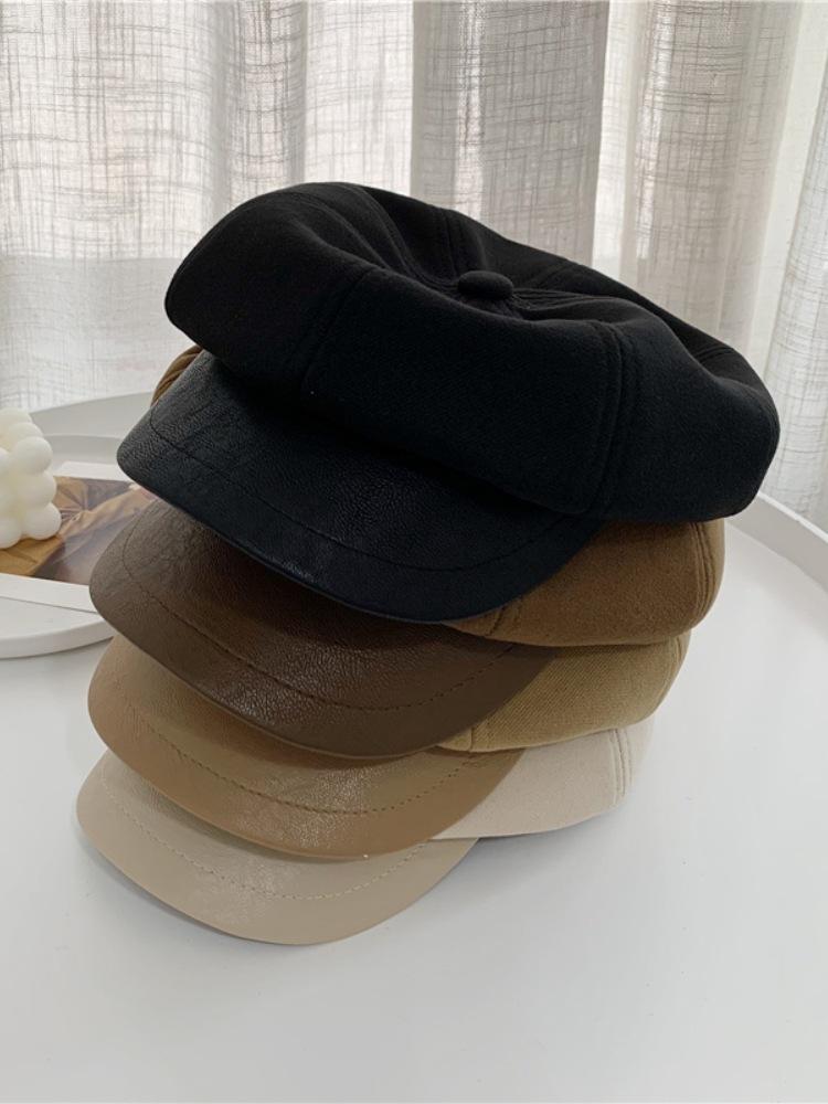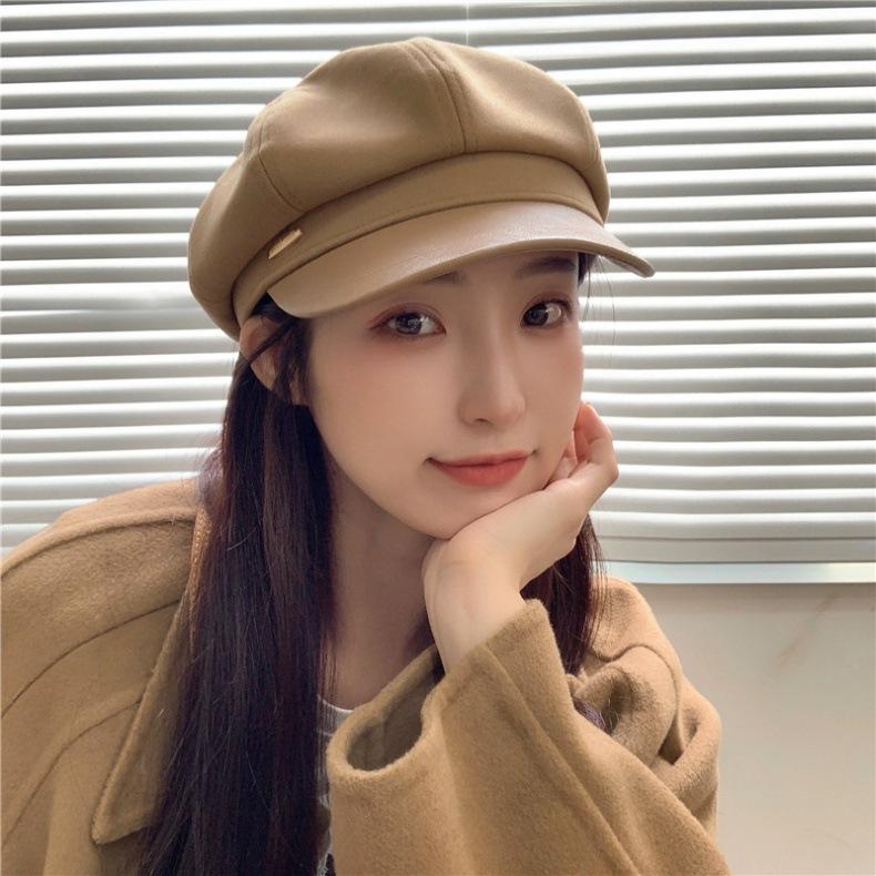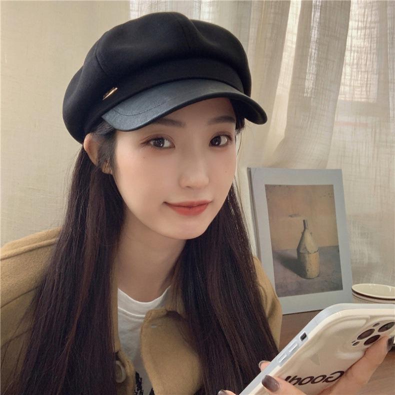 Boina de otoño marrón cálido con costuras de lana sintética para mujer, estilo coreano, otoño e invierno, versátil, retro, elegante, de moda, sombrero octogonal