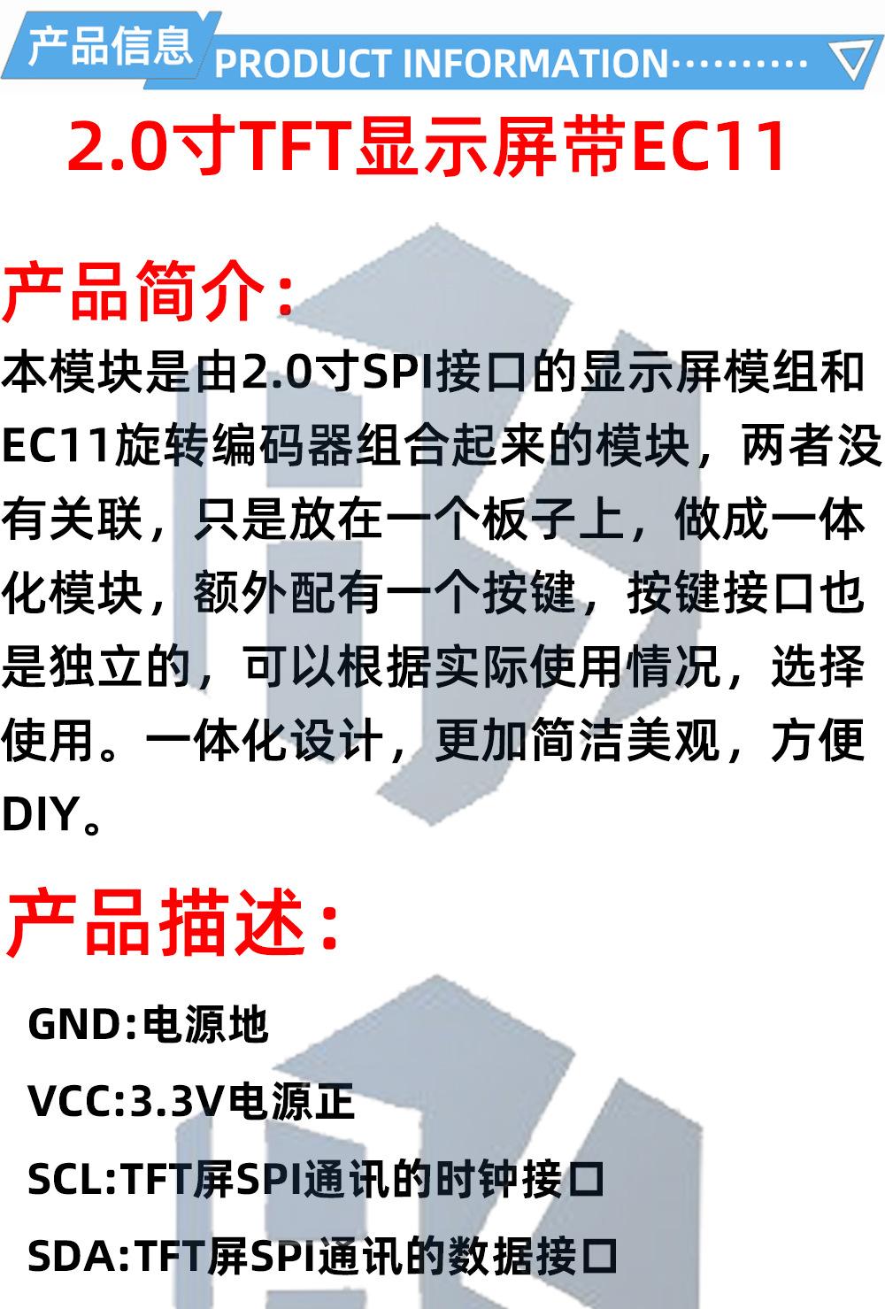 Pantalla TFT de 2.0 pulgadas con módulo combinado de codificador rotatorio EC11 interfaz SPI pantalla LCD
